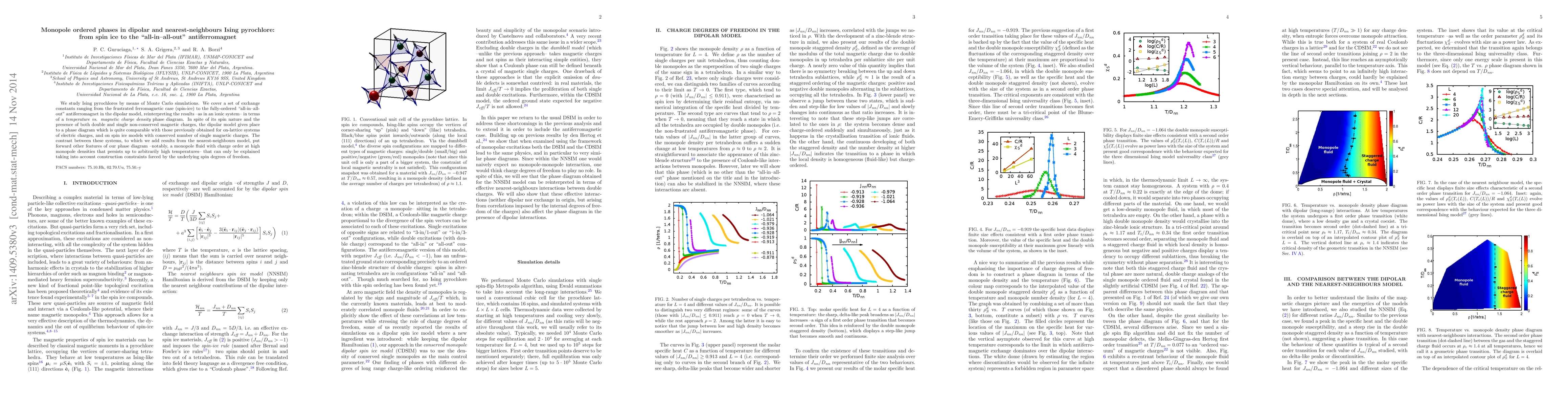 We study Ising pyrochlores by means of Monte Carlo simulations. We cover a set of exchange constants ranging from the frustrated ferromagnetic case (spin-ice) to the fully-ordered "all-in--all-out" antiferromagnet in the dipolar model, reinterpreting the results --as in an ionic system-- in terms of a temperature vs. magnetic charge density phase diagram. In spite of its spin nature and the presence of both double and single non-conserved magnetic charges, the dipolar model gives place to a phase diagram which is quite comparable with those previously obtained for on-lattice systems of electric charges, and on spin ice models with conserved number of single magnetic charges. The contrast between these systems, to which we add results from the nearest-neighbours model, put forward other features of our phase diagram --notably, a monopole fluid with charge order at high monopole densities that persists up to arbitrarily high temperatures-- that can only be explained taking into account construction constraints forced by the underlying spin degrees of freedom.