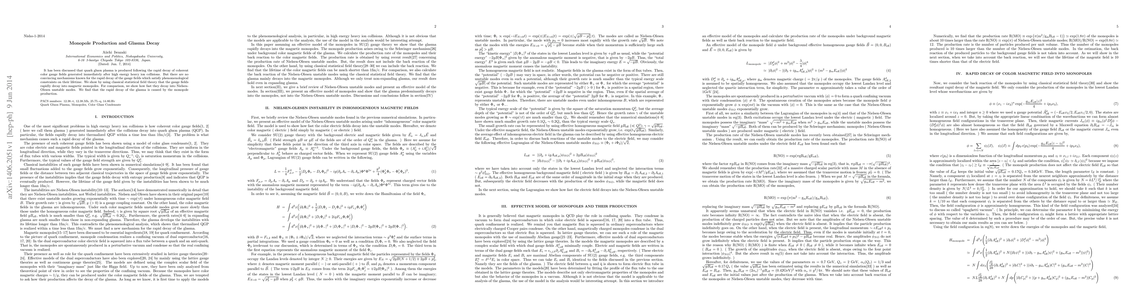 It has been discussed that quark gluon plasma is produced following the rapid decay of coherent color gauge fields generated immediately after high energy heavy ion collisions. But there are no convincing mechanisms known for the rapid decay of the gauge fields which satisfy phenomenological constraints on their lifetime. We show by using classical statistical field theory that the gauge fields rapidly decay into magnetic monopoles. For comparison, we show how fast they decay into Nielsen-Olesen unstable modes. We find that the rapid decay of the glasma is caused by the monopole production.