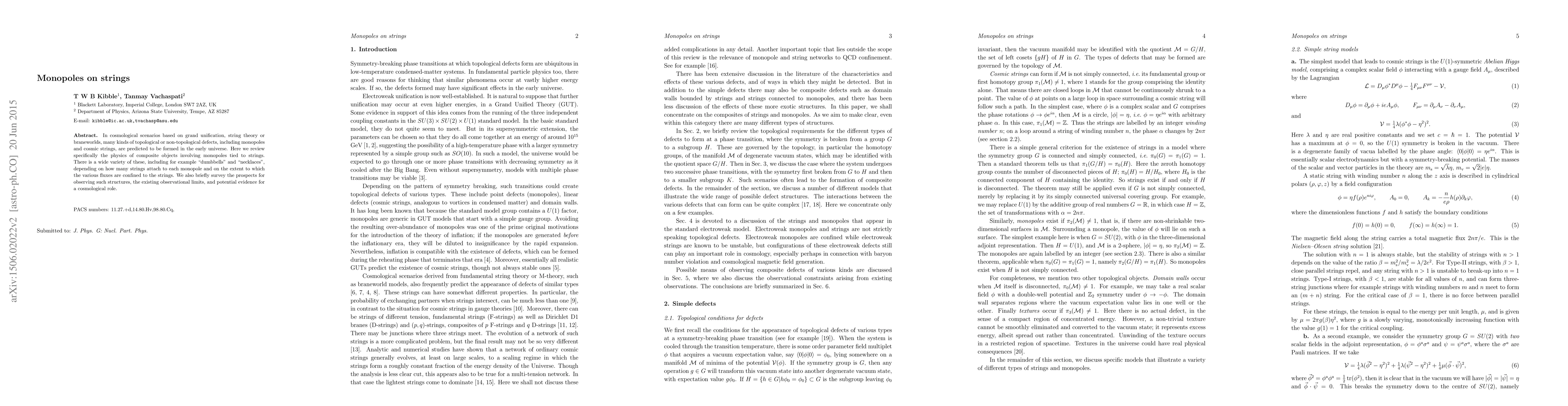 This paper reviews the physics of composite objects formed by monopoles tied to cosmic strings, including "dumbbells" and "necklaces," and discusses their potential observational signatures and cosmological implications. It also surveys existing observational limits and the prospects for detecting such structures.