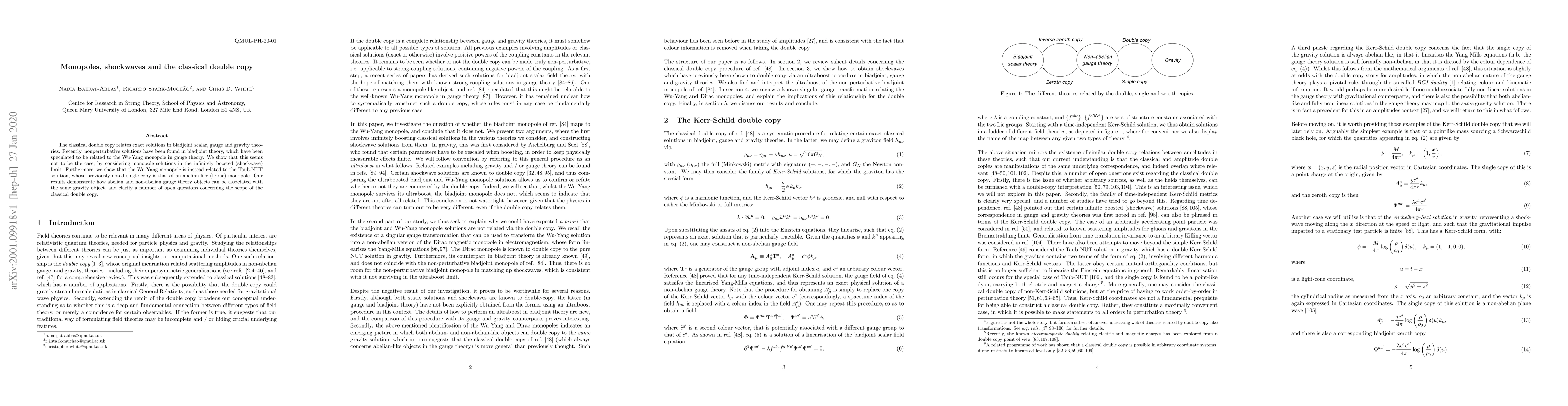 The classical double copy relates exact solutions in biadjoint scalar, gauge and gravity theories. Recently, nonperturbative solutions have been found in biadjoint theory, which have been speculated to be related to the Wu-Yang monopole in gauge theory. We show that this seems not to be the case, by considering monopole solutions in the infinitely boosted (shockwave) limit. Furthermore, we show that the Wu-Yang monopole is instead related to the Taub-NUT solution, whose previously noted single copy is that of an abelian-like (Dirac) monopole. Our results demonstrate how abelian and non-abelian gauge theory objects can be associated with the same gravity object, and clarify a number of open questions concerning the scope of the classical double copy.