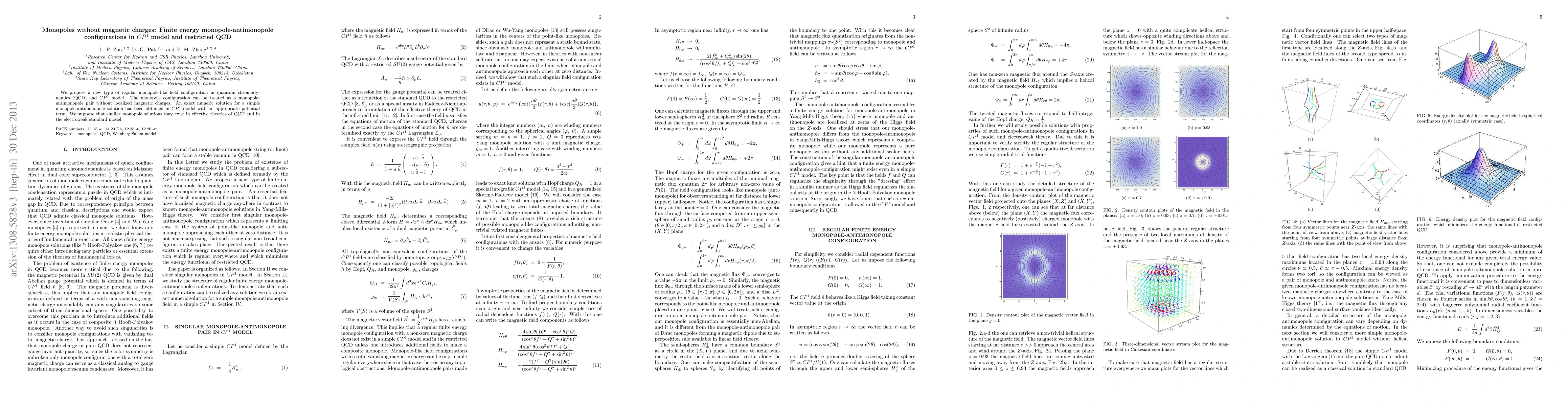 This paper proposes a novel monopole-like field configuration in QCD and CP^1 model, presenting a monopole-antimonopole pair without localized magnetic charges. An exact numerical solution for this configuration is obtained in the CP^1 model, suggesting potential existence in QCD and the electroweak standard model.