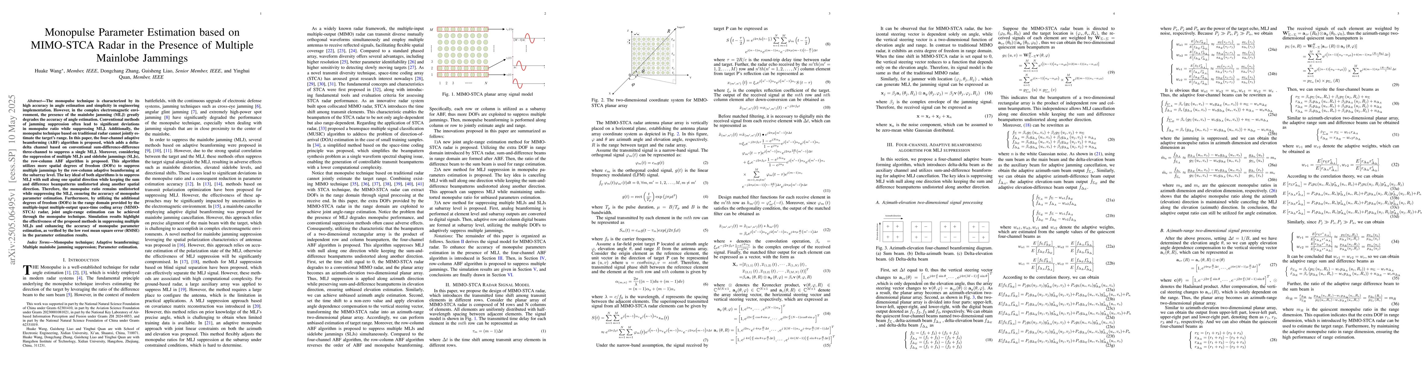 The paper presents novel adaptive beamforming algorithms for MLJ and SLJ suppression in monopulse radar systems, leveraging MIMO-STCA radar for joint angle-range estimation.