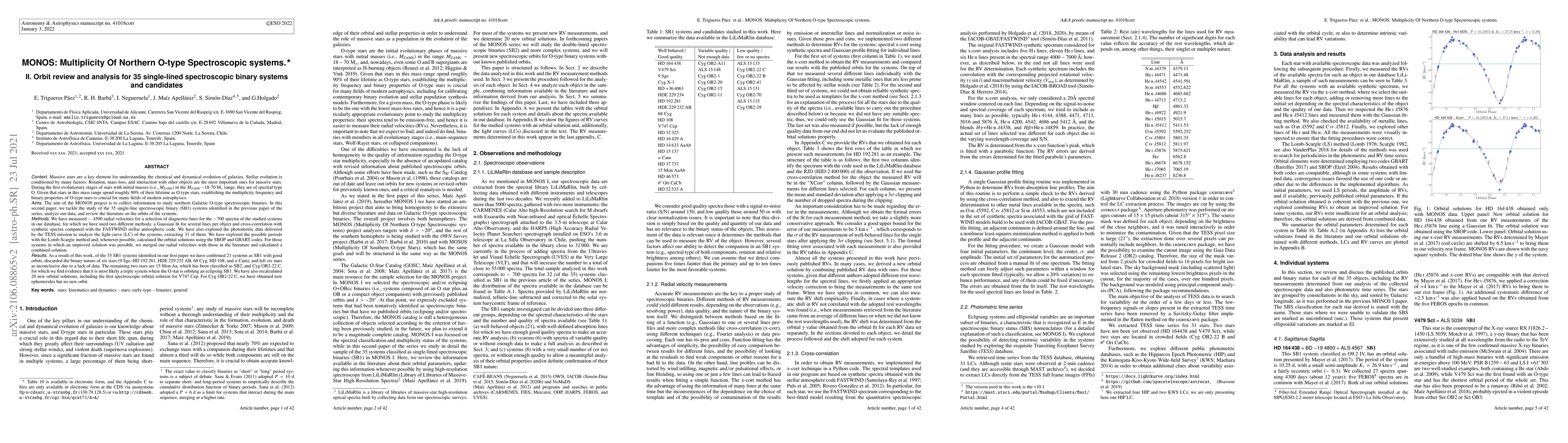 [ABRIDGED] AIMS: The MONOS project is collecting information and studying O-type spectroscopic binaries with delta > -20 deg. In this 2nd paper, we tackle the study of the 35 single-line spectroscopic binary (SB1) systems identified in the previous paper of the series (arXiv:1904.11385) by analyzing our data and reviewing the literature orbits of such systems. METHODS: We have measured the radial velocities for the ~700 spectra in our database using two different methods: Gaussian fitting for several diagnostic lines per object and cross-correlation using synthetic spectra. We also explored the TESS database and analyzed the light curves for 31 of the systems. RESULTS: We have confirmed 21 SB1 systems, discarded the binary nature of 6 stars (9 Sge, HD 192 281, HDE 229 232 AB, 68 Cyg, HD 108 and \alpha Cam), and left 6 stars as inconclusive due to lack of data. The remaining two stars are 15 Mon Aa which has been classified as SB2, and Cyg OB2-22 C, for which we find evidence that it is most likely a triple system where the O star is orbiting an eclipsing SB1. We have also recalculated 20 new orbital solutions, including the first spectroscopic orbital solution for V747 Cep. For Cyg OB2-22 C we have obtained new ephemerides but no new orbit.