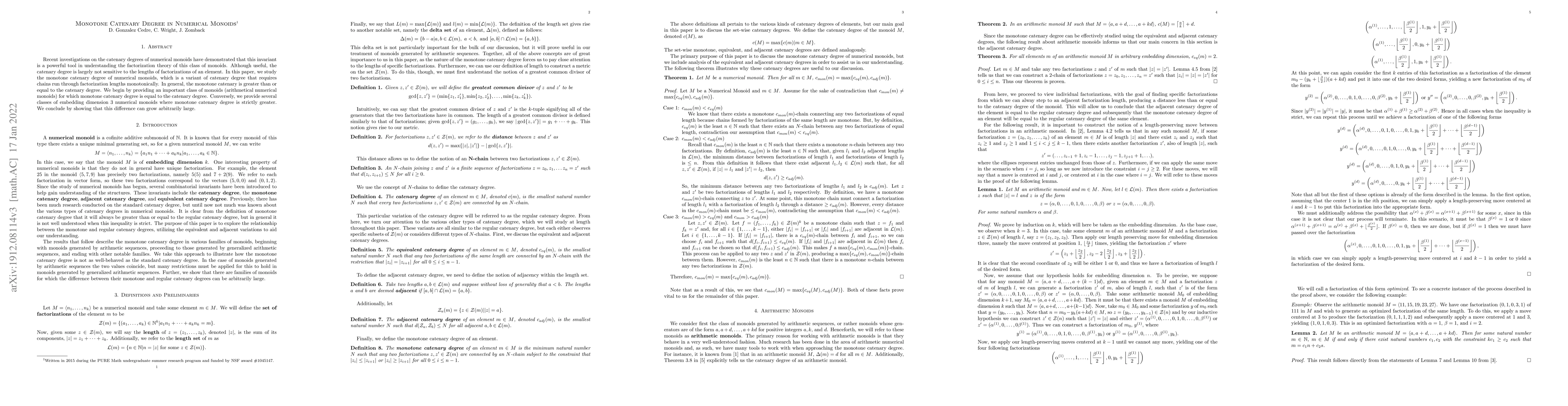 This paper explores the monotone catenary degree in numerical monoids, a variant that requires factorization chains to increase monotonically. It finds that this degree is always greater than or equal to the standard catenary degree, with equal values in arithmetical numerical monoids and larger values in certain dimension 3 monoids, demonstrating that the difference can be arbitrarily large.
