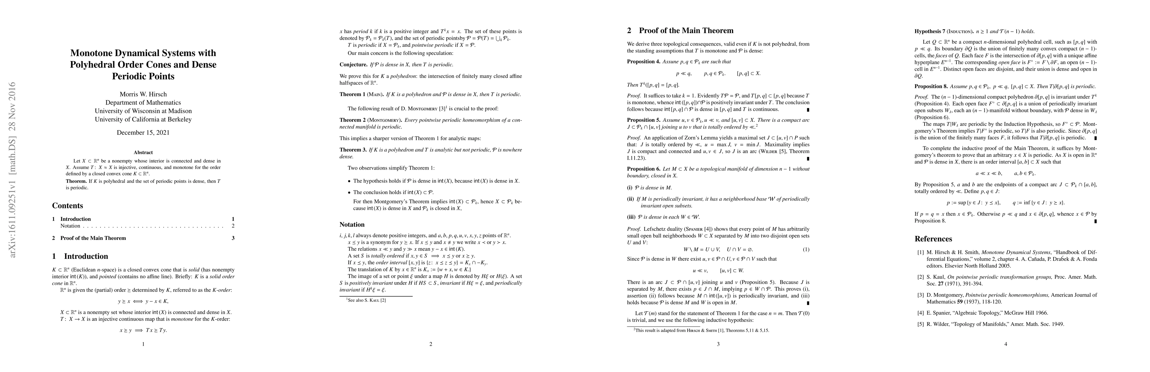Let X be a subset of R^n whose interior is connected and dense in X, ordered by a polyhedral cone in R^n with nonempty interior. Let T be a monotone homeomorphism of X whose periodic points are dense. Then T is periodic.