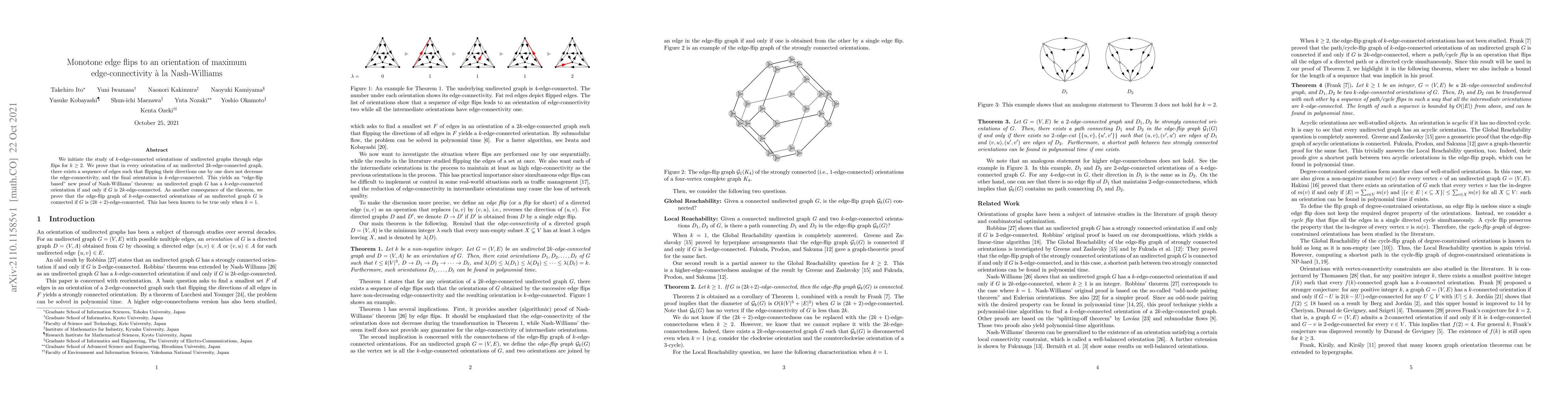 We initiate the study of $k$-edge-connected orientations of undirected graphs through edge flips for $k \geq 2$. We prove that in every orientation of an undirected $2k$-edge-connected graph, there exists a sequence of edges such that flipping their directions one by one does not decrease the edge-connectivity, and the final orientation is $k$-edge-connected. This yields an ``edge-flip based'' new proof of Nash-Williams' theorem: an undirected graph $G$ has a $k$-edge-connected orientation if and only if $G$ is $2k$-edge-connected. As another consequence of the theorem, we prove that the edge-flip graph of $k$-edge-connected orientations of an undirected graph $G$ is connected if $G$ is $(2k+2)$-edge-connected. This has been known to be true only when $k=1$.