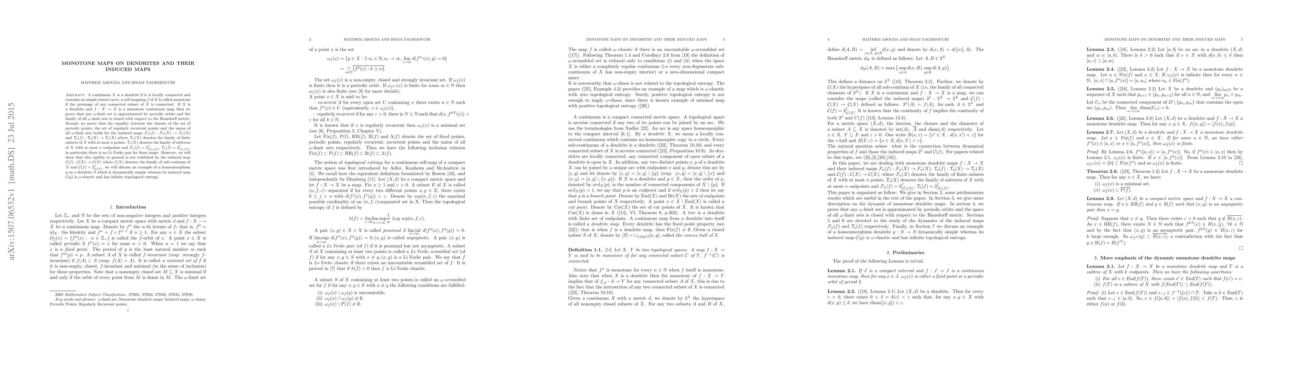 Researchers prove that monotone maps on dendrites have specific properties, including periodic orbits approximating omega-limit sets and a unique relationship between periodic points, regularly recurrent points, and omega-limit sets of induced maps.