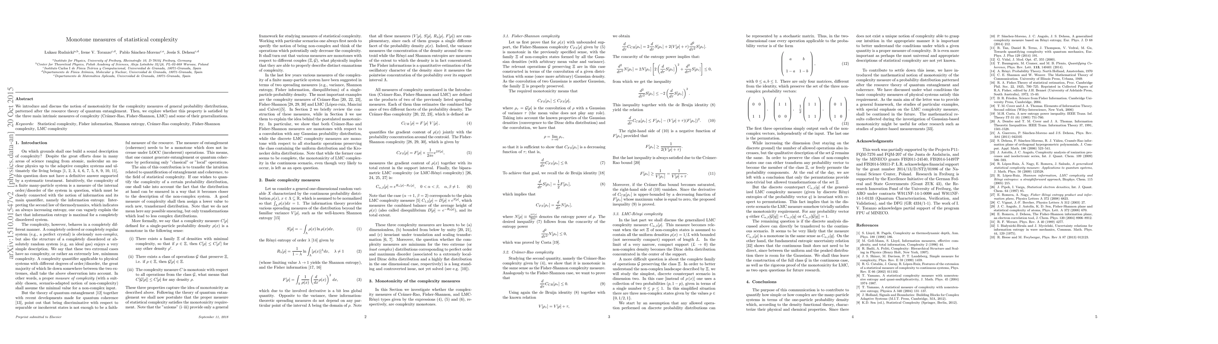 Researchers introduce a new concept of monotonicity in statistical complexity measures, examining whether these properties hold true for common methods like Cramer-Rao, Fisher-Shannon, and LMC. The study finds that most measures do not satisfy this property.