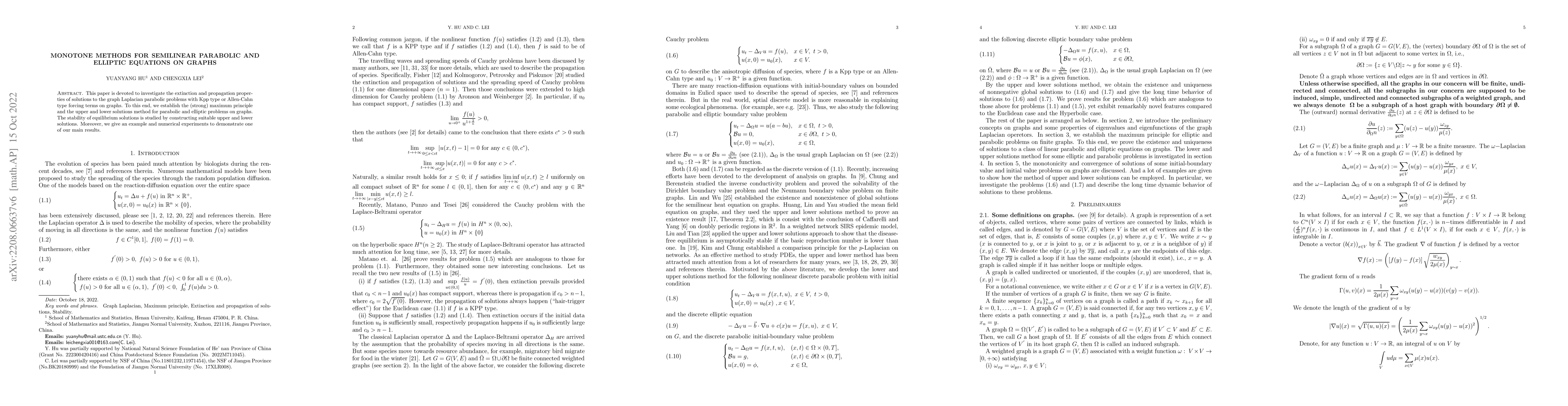 This paper explores the extinction and propagation properties of solutions to graph Laplacian parabolic problems with Kpp or Allen-Cahn forcing terms, establishing a maximum principle and using upper and lower solutions methods. Numerical experiments are provided to validate the findings.