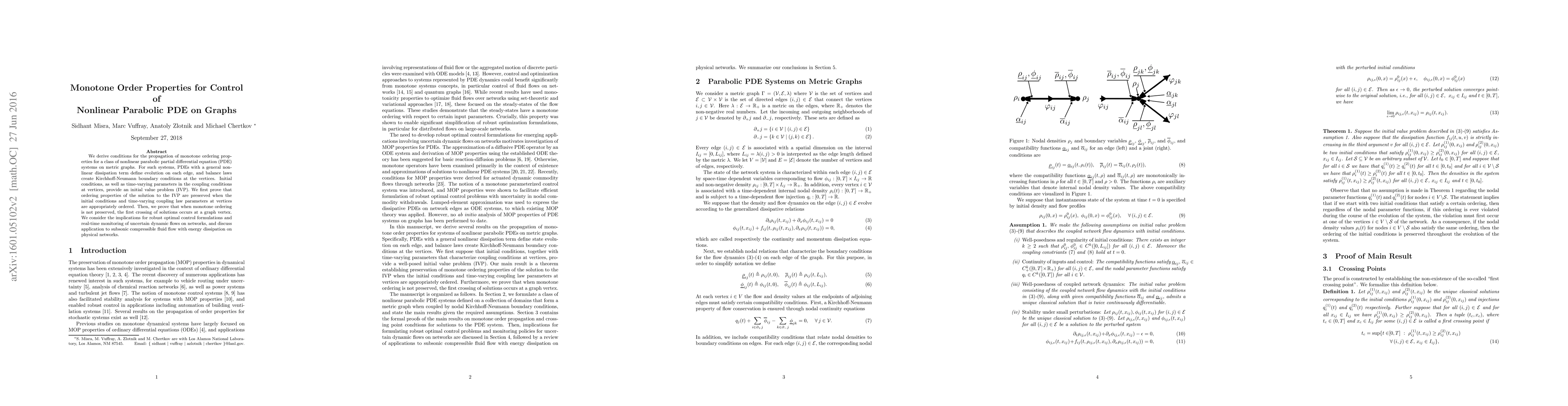 We derive conditions for the propagation of monotone ordering properties for a class of nonlinear parabolic partial differential equation (PDE) systems on metric graphs. For such systems, PDE equations with a general nonlinear dissipation term define evolution on each edge, and balance laws create Kirchhoff-Neumann boundary conditions at the vertices. Initial conditions, as well as time-varying parameters in the coupling conditions at vertices, provide an initial value problem (IVP). We first prove that ordering properties of the solution to the IVP are preserved when the initial conditions and time-varying coupling law parameters at vertices are appropriately ordered. In addition, we prove that when monotone ordering is not preserved, the first crossing of solutions occurs at a graph vertex. We consider the implications for robust optimal control formulations and real-time monitoring involving uncertain dynamic flows on networks, and discuss application to subsonic compressible fluid flow with energy dissipation on physical networks.