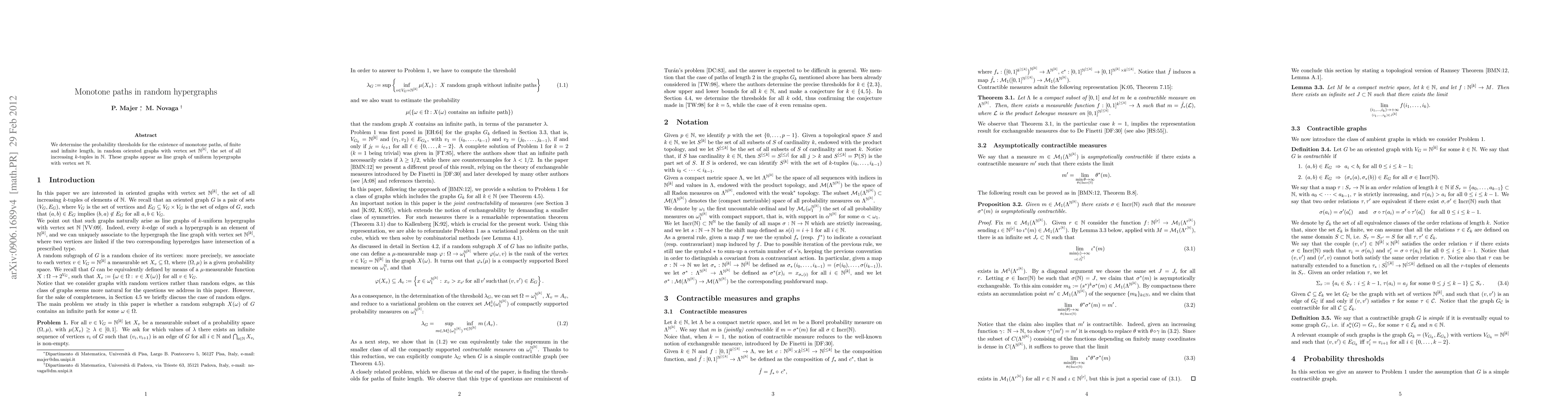 Summary: This paper investigates the probability thresholds for the existence of monotone paths in random oriented graphs derived from uniform hypergraphs, focusing on both finite and infinite paths within the set of all increasing k-tuples in natural numbers.