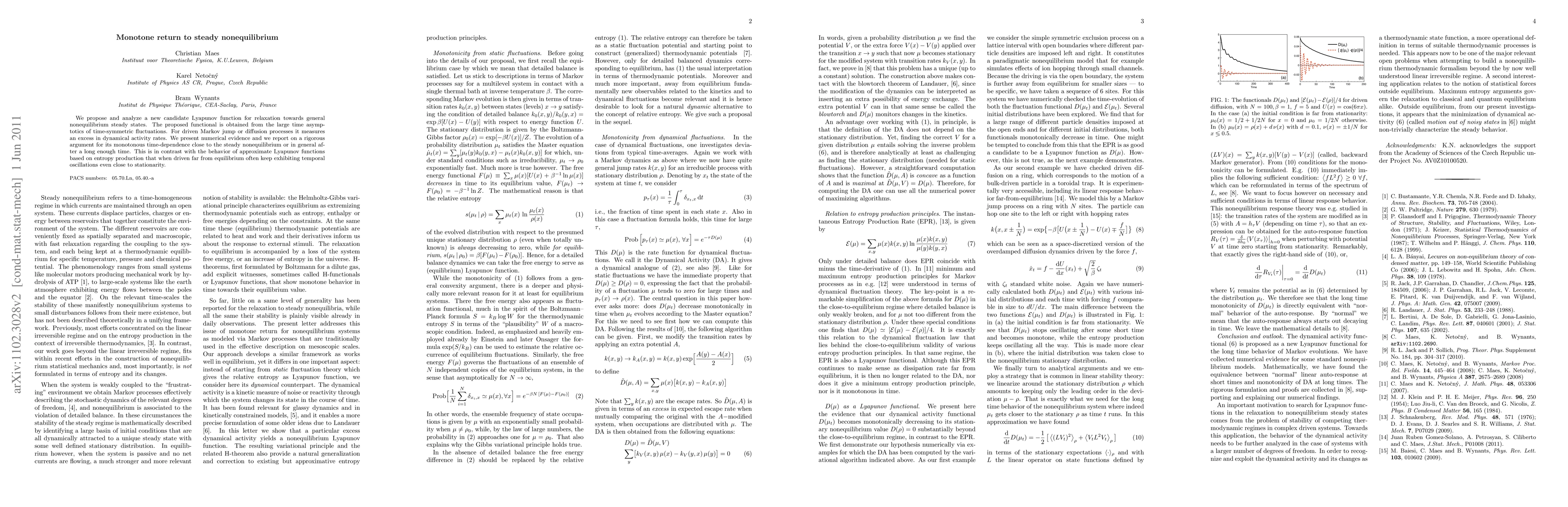 We propose and analyze a new candidate Lyapunov function for relaxation towards general nonequilibrium steady states. The proposed functional is obtained from the large time asymptotics of time-symmetric fluctuations. For driven Markov jump or diffusion processes it measures an excess in dynamical activity rates. We present numerical evidence and we report on a rigorous argument for its monotonous time-dependence close to the steady nonequilibrium or in general after a long enough time. This is in contrast with the behavior of approximate Lyapunov functions based on entropy production that when driven far from equilibrium often keep exhibiting temporal oscillations even close to stationarity.