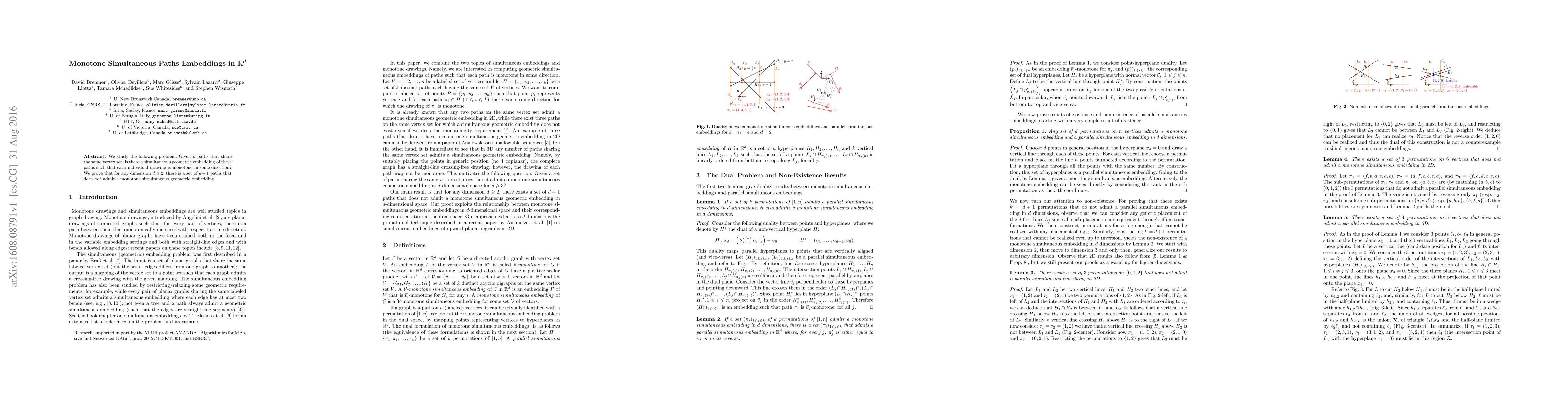 This paper investigates whether $k$ paths sharing the same vertex set can be simultaneously embedded in $\mathbb{R}^d$ such that each path is monotone in some direction. It concludes that for any dimension $d \geq 2$, there exists a set of $d+1$ paths that cannot be simultaneously embedded in a monotone manner.