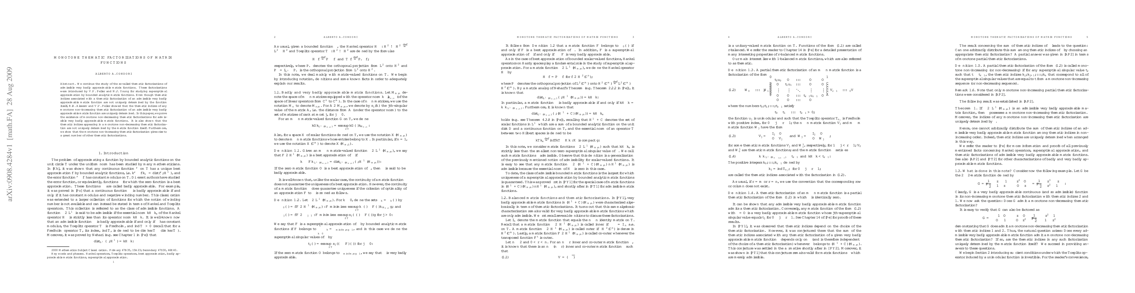 We continue the study of the so-called thematic factorizations of admissible very badly approximable matrix functions. These factorizations were introduced by V.V. Peller and N.J. Young for studying superoptimal approximation by bounded analytic matrix functions. Even though thematic indices associated with a thematic factorization of an admissible very badly approximable matrix function are not uniquely determined by the function itself, R.B. Alexeev and V.V. Peller showed that the thematic indices of any monotone non-increasing thematic factorization of an admissible very badly approximable matrix function are uniquely determined. In this paper, we prove the existence of monotone non-decreasing thematic factorizations for admissible very badly approximable matrix functions. It is also shown that the thematic indices appearing in a monotone non-decreasing thematic factorization are not uniquely determined by the matrix function itself. Furthermore, we show that the monotone non-increasing thematic factorization gives rise to a great number of other thematic factorizations.
