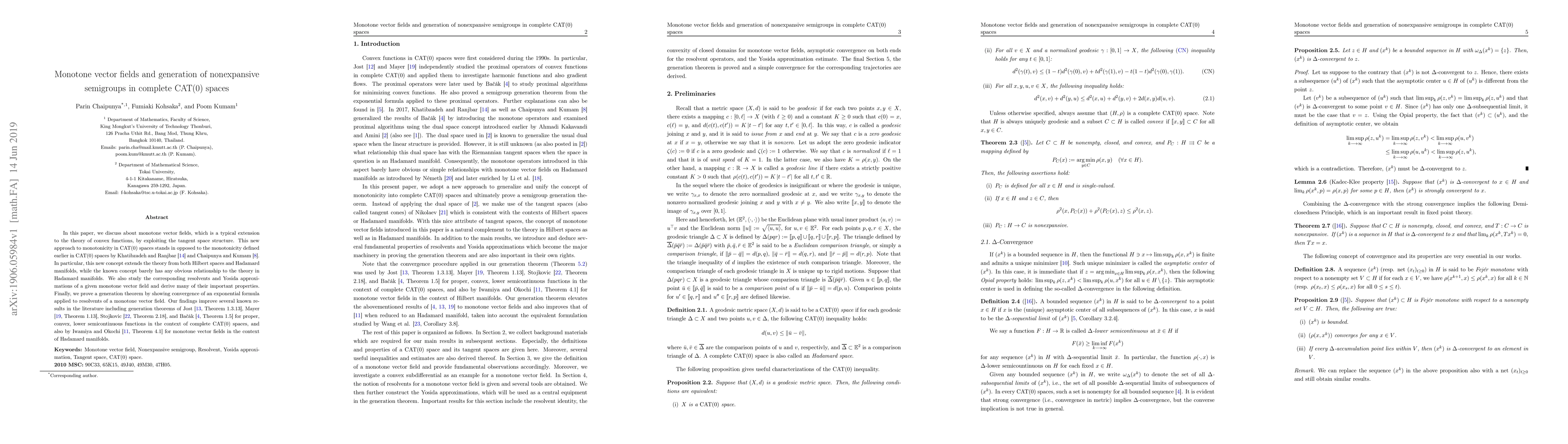 This paper introduces a new notion of monotone vector fields in complete CAT(0) spaces, extending the theory beyond convex functions and Hadamard manifolds. It studies the properties of resolvents and Yosida approximations of these vector fields and proves a generation theorem for nonexpansive semigroups, improving upon several existing results in the field.