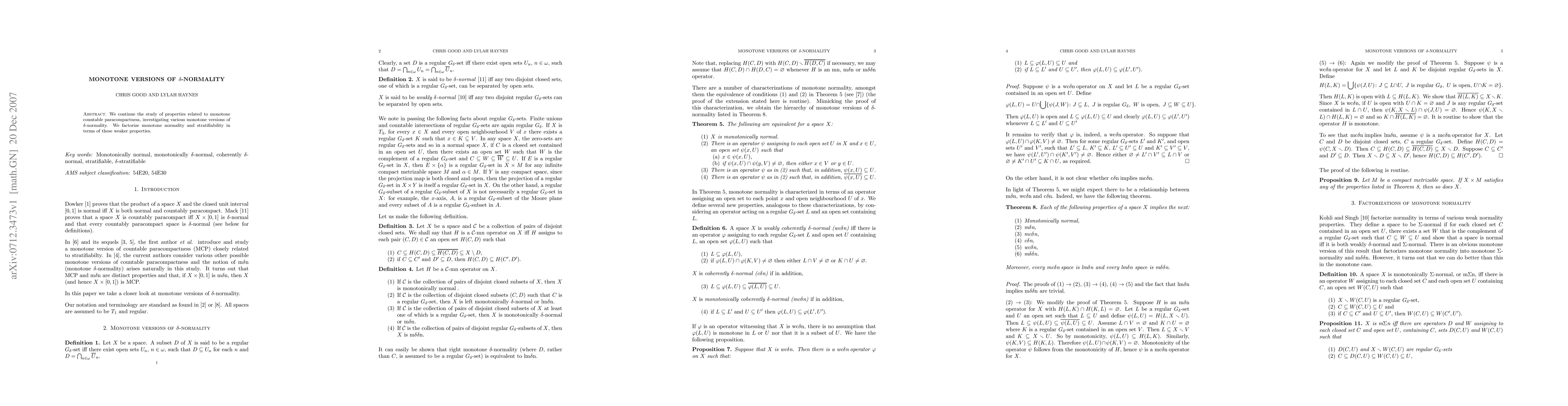 This paper explores monotone versions of $\delta$-normality and their implications for monotone countable paracompactness, factorizing monotone normality and stratifiability through these weaker properties.