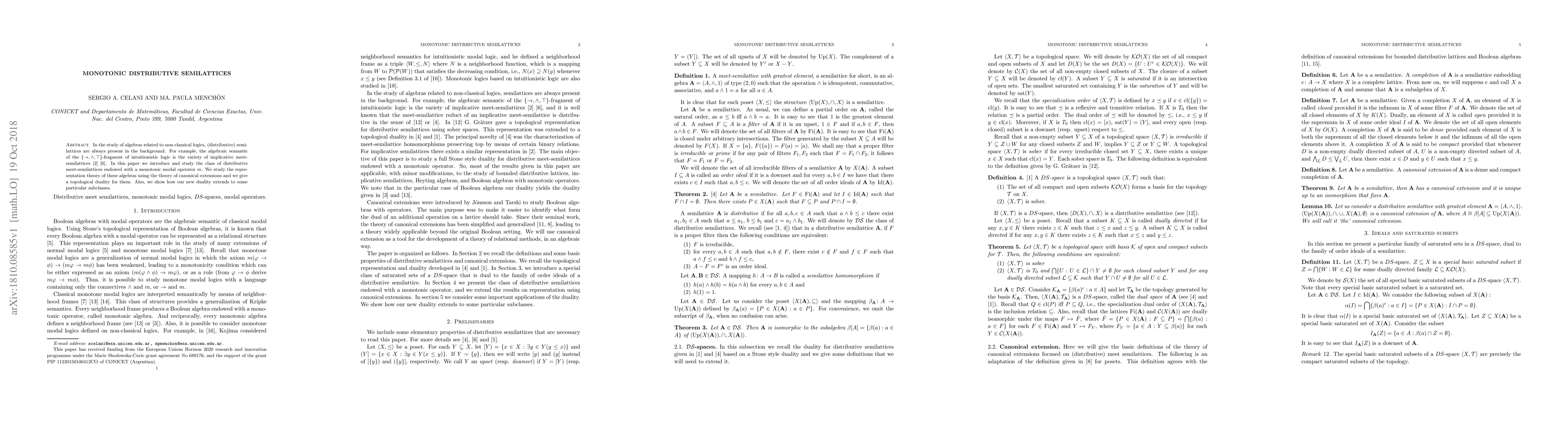 In the study of algebras related to non-classical logics, (distributive) semilattices are always present in the background. For example, the algebraic semantic of the $\{\rightarrow,\wedge,\top\}$-fragment of intuitionistic logic is the variety of implicative meet-semilattices \cite{CelaniImplicative} \cite{ChajdaHalasKuhr}. In this paper we introduce and study the class of distributive meet-semilattices endowed with a monotonic modal operator $m$. We study the representation theory of these algebras using the theory of canonical extensions and we give a topological duality for them. Also, we show how our new duality extends to some particular subclasses.