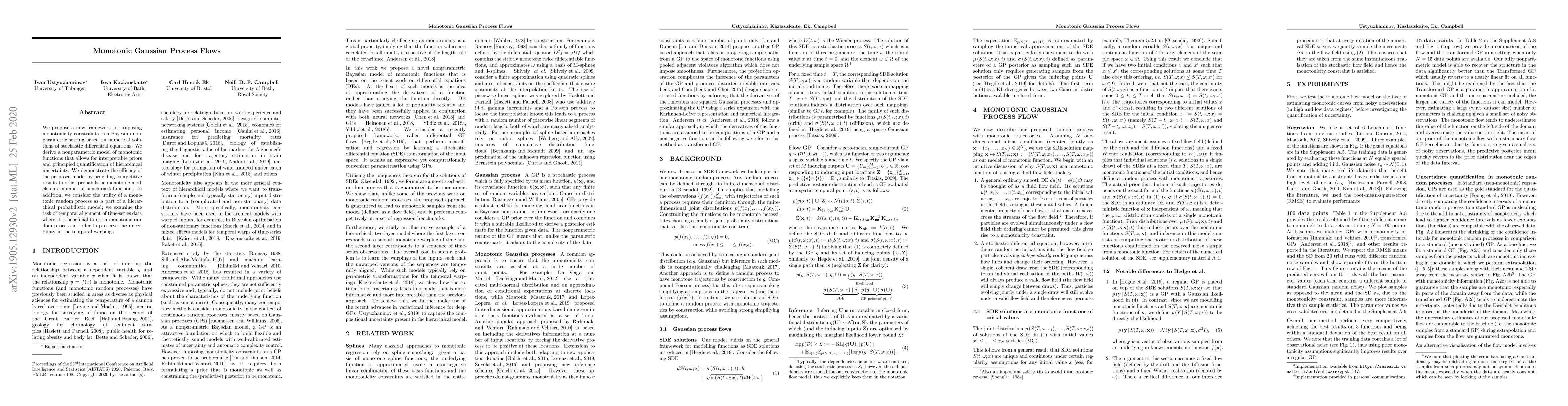 The paper proposes a new framework for imposing monotonicity constraints in Bayesian nonparametric settings using numerical solutions of stochastic differential equations (SDEs). It derives a nonparametric model of monotonic functions allowing for interpretable priors and hierarchical uncertainty quantification.
