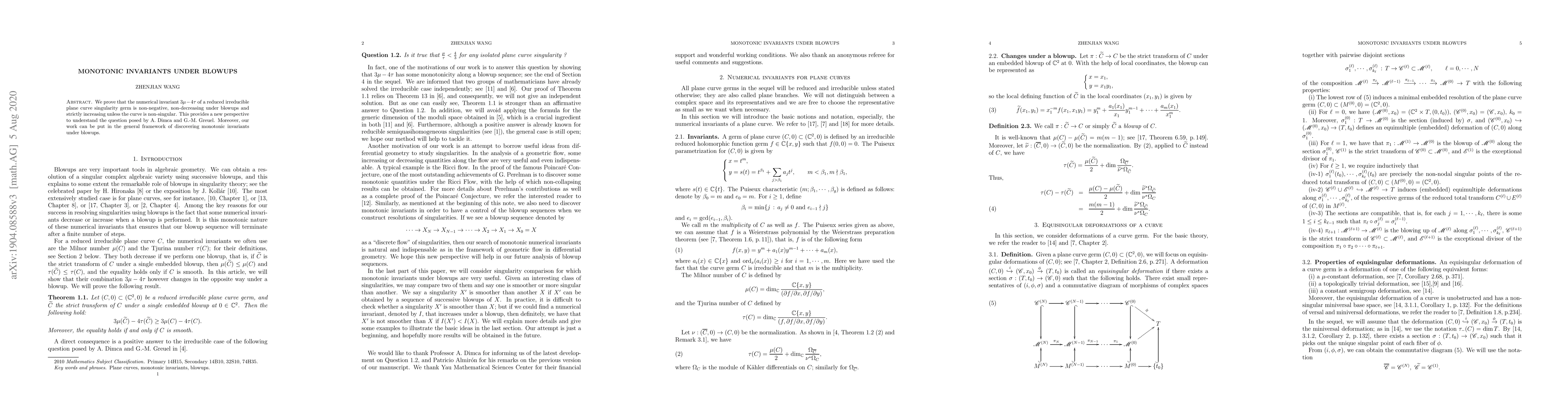 The paper establishes that the invariant $3\mu-4\tau$ for plane curve singularities is non-negative, non-decreasing under blowups, and strictly increasing unless the curve is non-singular, thus offering insights into questions posed by Dimca and Greuel.