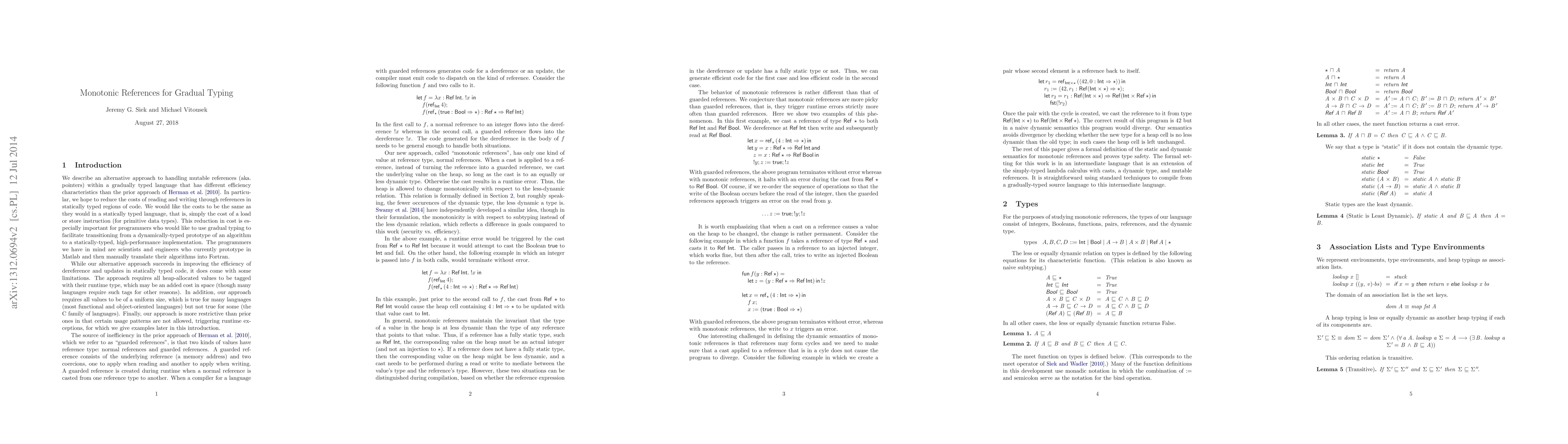 We describe an alternative approach to handling mutable references (aka. pointers) within a gradually typed language that has different efficiency characteristics than the prior approach of Herman et al. [2010]. In particular, we reduce the costs of reading and writing through references in statically typed regions of code. We reduce the costs to be the same as they would in a statically typed language, that is, simply the cost of a load or store instruction (for primitive data types). This reduction in cost is especially important for programmers who would like to use gradual typing to facilitate transitioning from a dynamically-typed prototype of an algorithm to a statically-typed, high-performance implementation. The programmers we have in mind are scientists and engineers who currently prototype in Matlab and then manually translate their algorithms into Fortran. We present the static and dynamic semantics for mutable references and a mechanized proof of type safety using the Isabelle proof assistant.
