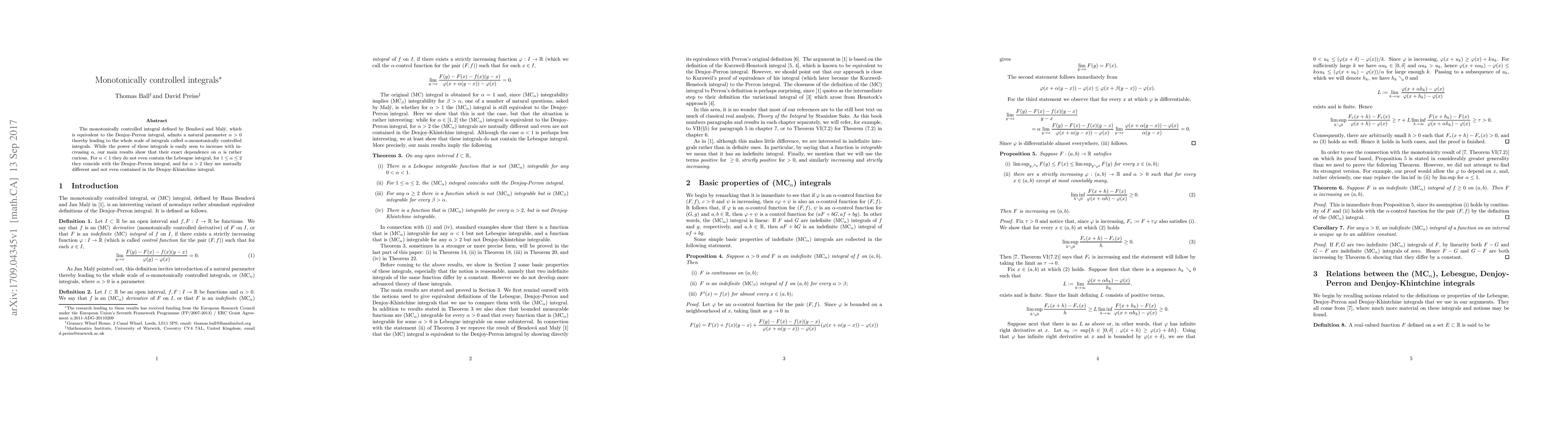 The paper explores $\alpha$-monotonically controlled integrals, a generalization of the Denjoy-Perron integral, revealing that their inclusion and properties vary curiously with $\alpha$. For $\alpha<1$, they exclude the Lebesgue integral, while for $1\le\alpha\le 2$ they match the Denjoy-Perron integral, and for $\alpha>2$, they diverge and are not contained within the Denjoy-Khintchine integral.