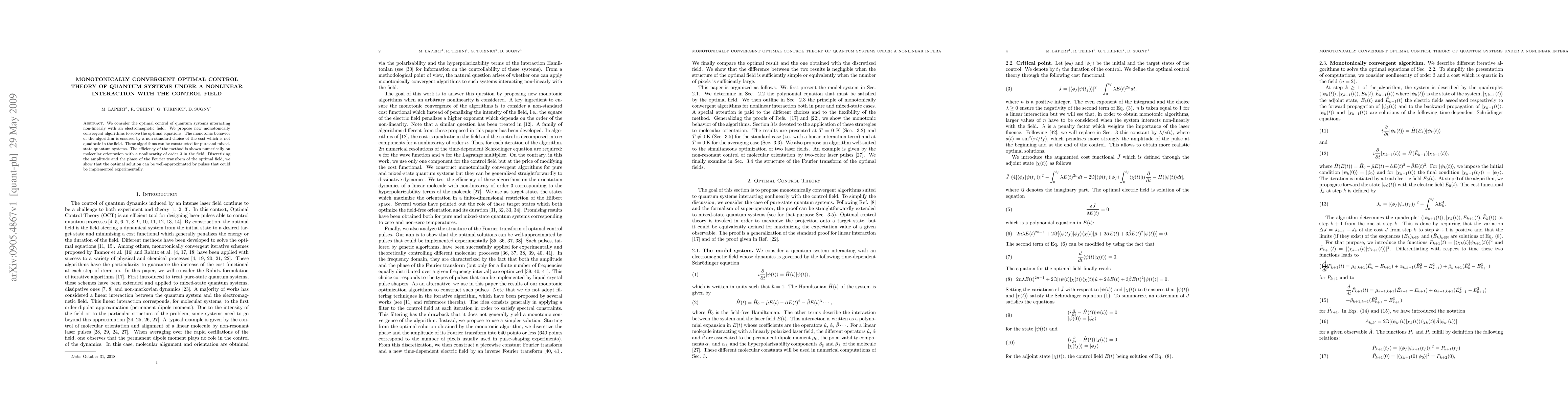 We consider the optimal control of quantum systems interacting non-linearly with an electromagnetic field. We propose new monotonically convergent algorithms to solve the optimal equations. The monotonic behavior of the algorithm is ensured by a non-standard choice of the cost which is not quadratic in the field. These algorithms can be constructed for pure and mixed-state quantum systems. The efficiency of the method is shown numerically on molecular orientation with a non-linearity of order 3 in the field. Discretizing the amplitude and the phase of the Fourier transform of the optimal field, we show that the optimal solution can be well-approximated by pulses that could be implemented experimentally.