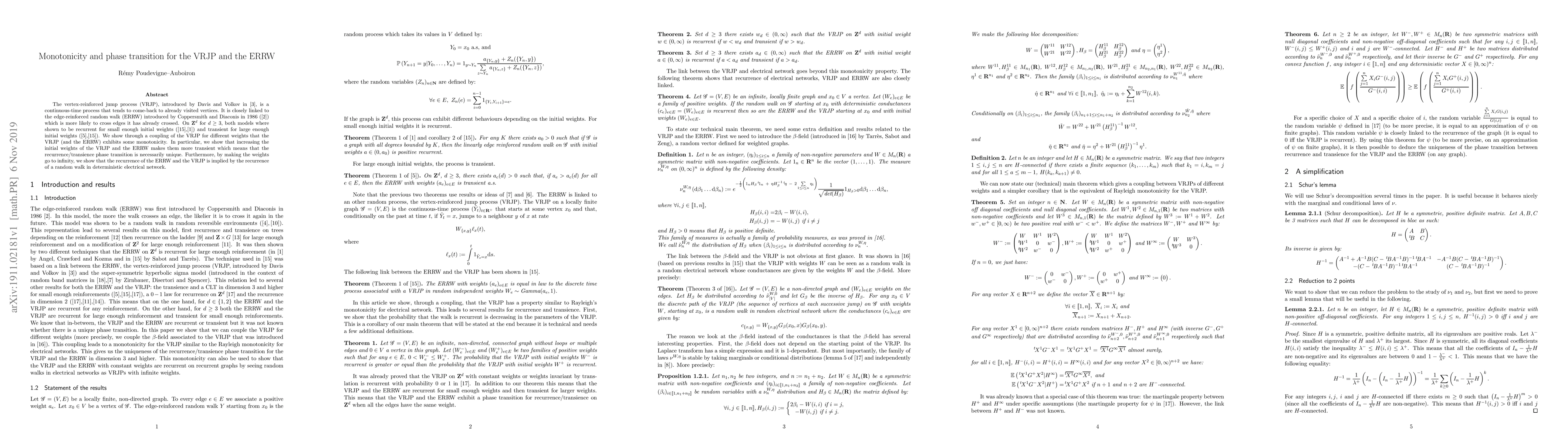 The vertex-reinforced jump process (VRJP), introduced by Davis and Volkov, is a continuous-time process that tends to come-back to already visited vertices. It is closely linked to the edge-reinforced random walk (ERRW) introduced by Coppersmith and Diaconis in 1986 which is more likely to cross edges it has already crossed. On $\mathbb{Z}^d$ for $d\geq 3$, both models where shown to be recurrent for small enough initial weights (by Sabot, Tarr\`es(2015) and Angel,Crawford,Kozma(2014)) and transient for large enough initial weights (by Disertori,Sabot,Tarr\`es(2015) and Sabot,Tarr\`es(2015)). We show through a coupling of the VRJP for different weights that the VRJP (and the ERRW) exhibits some monotonicity. In particular, we show that increasing the initial weights of the VRJP and the ERRW makes them more transient which means that the recurrence/transience phase transition is necessarily unique. Furthermore, by making the weights go to infinity, we show that the recurrence of the ERRW and the VRJP is implied by the recurrence of a random walk in deterministic electrical network.