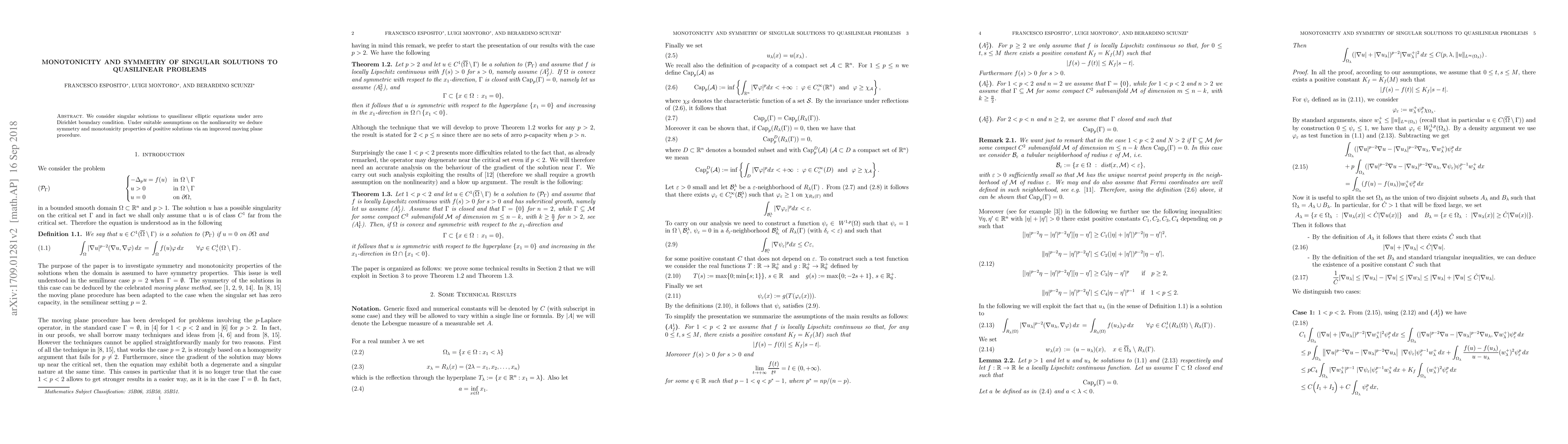 This paper investigates singular solutions to quasilinear elliptic equations with zero Dirichlet boundary conditions, proving symmetry and monotonicity of positive solutions through an advanced moving plane method based on assumptions about the equation's nonlinearity.