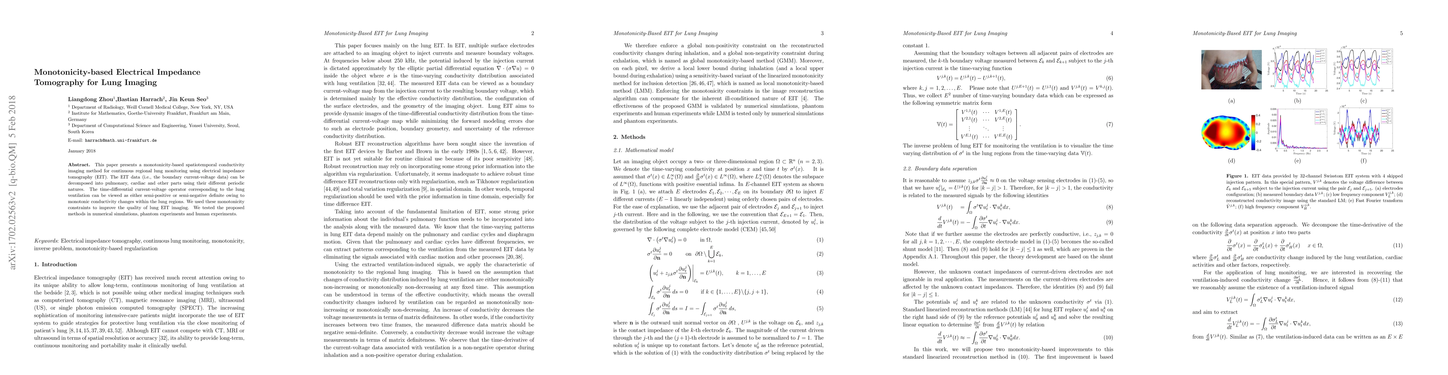 This paper introduces a monotonicity-based method for continuous lung monitoring using electrical impedance tomography (EIT), leveraging monotonic conductivity changes to enhance imaging quality. The method was validated through numerical simulations, phantom experiments, and human trials.