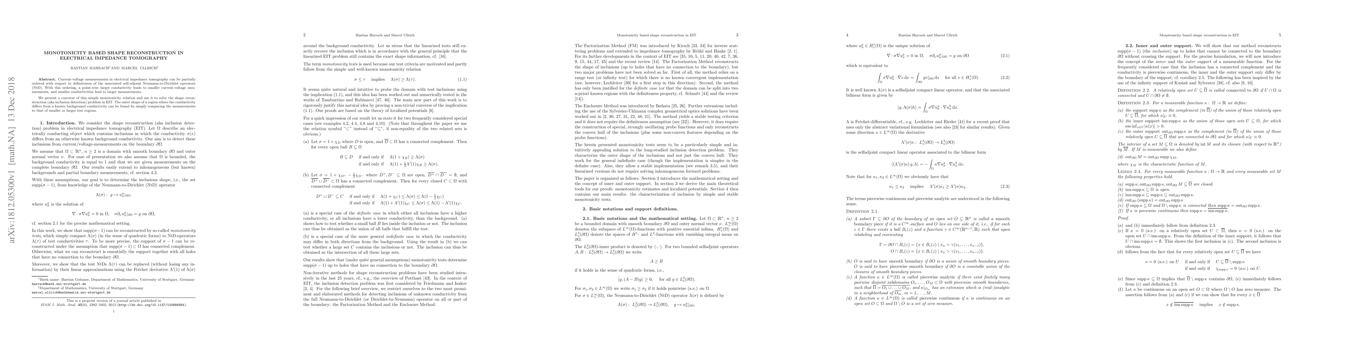 This paper proposes a monotonicity-based method for reconstructing the shape of regions with differing conductivities in electrical impedance tomography (EIT) by leveraging the relationship between conductivity and current-voltage measurements. The method identifies the outer shape by comparing measurements from test regions to the known background conductivity.
