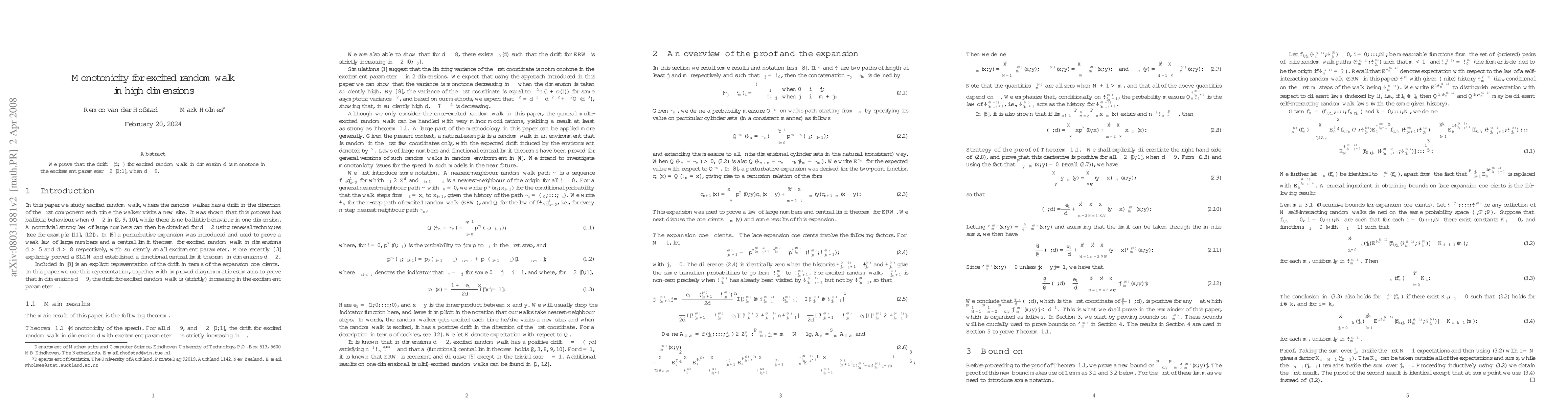 Summary: This paper demonstrates that the drift $\theta(d,\beta)$ for excited random walk in dimensions $d \ge 9$ is monotonically increasing with respect to the excitement parameter $\beta \in [0, 1]$. This establishes a monotonicity property for excited random walks in high-dimensional spaces.