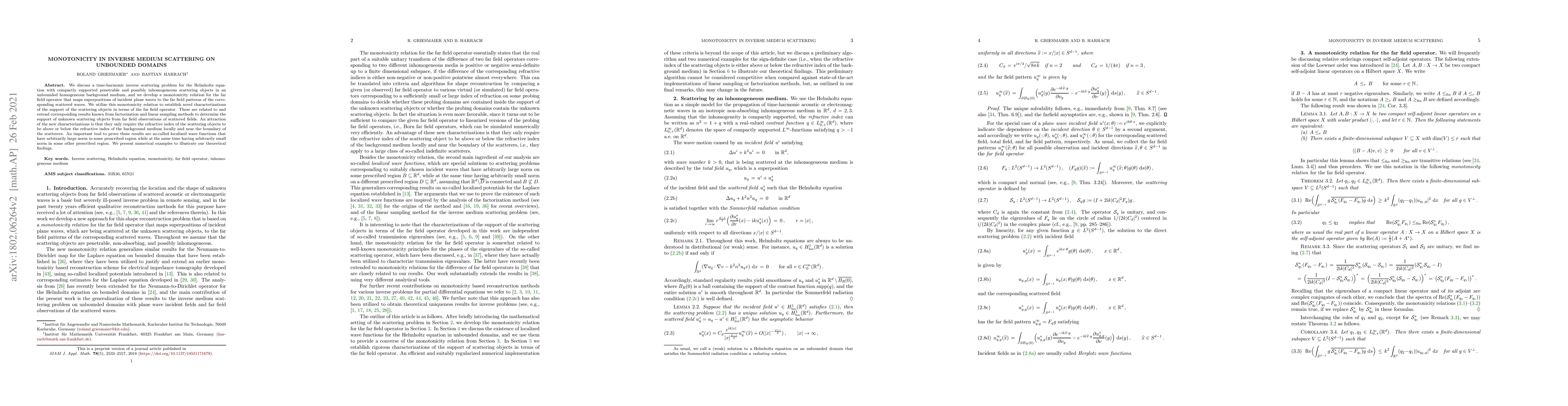 We discuss a time-harmonic inverse scattering problem for the Helmholtz equation with compactly supported penetrable and possibly inhomogeneous scattering objects in an unbounded homogeneous background medium, and we develop a monotonicity relation for the far field operator that maps superpositions of incident plane waves to the far field patterns of the corresponding scattered waves. We utilize this monotonicity relation to establish novel characterizations of the support of the scattering objects in terms of the far field operator. These are related to and extend corresponding results known from factorization and linear sampling methods to determine the support of unknown scattering objects from far field observations of scattered fields. An attraction of the new characterizations is that they only require the refractive index of the scattering objects to be above or below the refractive index of the background medium locally and near the boundary of the scatterers. An important tool to prove these results are so-called localized wave functions that have arbitrarily large norm in some prescribed region while at the same time having arbitrarily small norm in some other prescribed region. We present numerical examples to illustrate our theoretical findings.