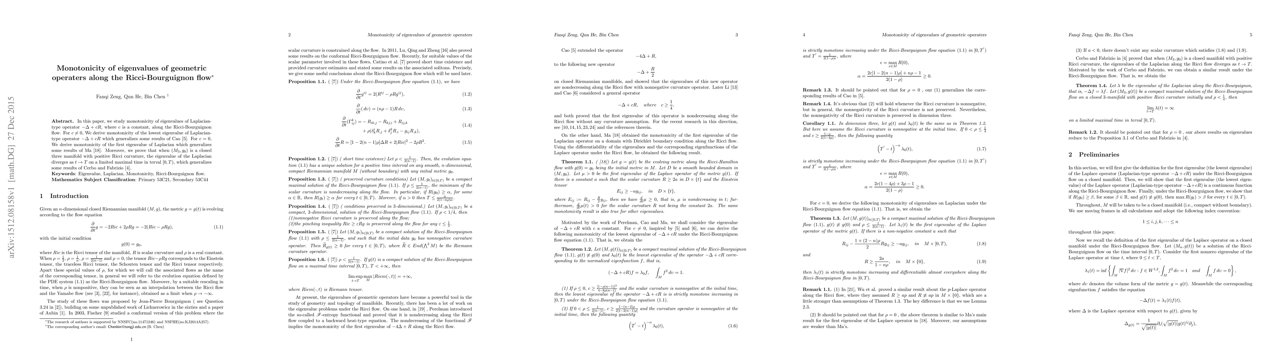 This paper investigates the monotonicity of eigenvalues for the operator $-\Delta+cR$ along the Ricci-Bourguignon flow, deriving results for both $c\neq0$ and $c=0$ that generalize prior findings. It also shows that in closed three-manifolds with positive Ricci curvature, the eigenvalue of the Laplacian diverges over a finite maximal time interval.