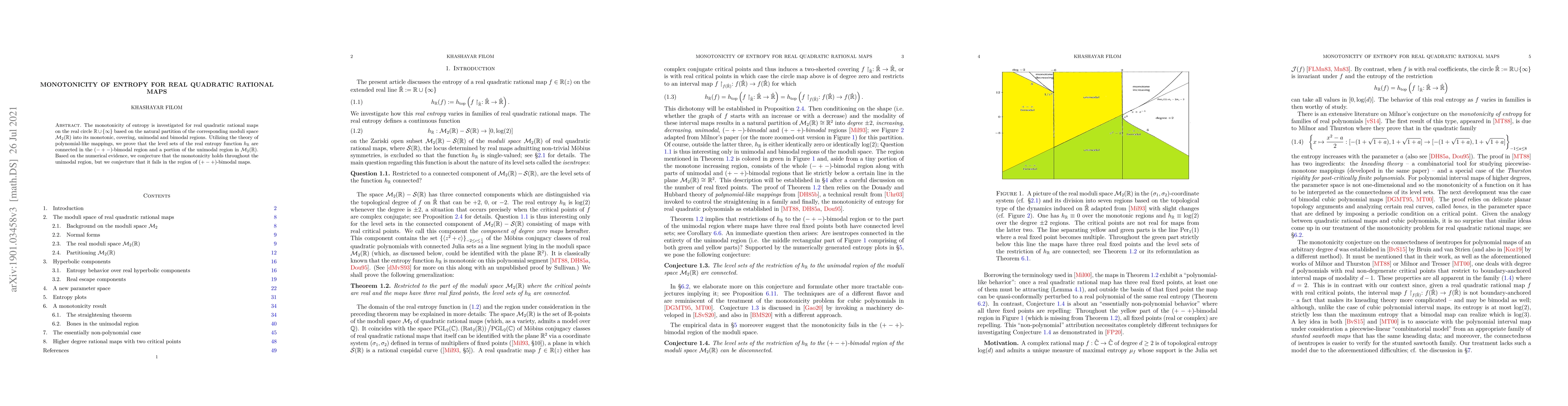 This paper investigates the monotonicity of entropy for real quadratic rational maps on the real circle, proving that the level sets of the real entropy function are connected in specific regions. The authors conjecture that monotonicity holds in the unimodal region but may fail in the $(+-+)$-bimodal region.