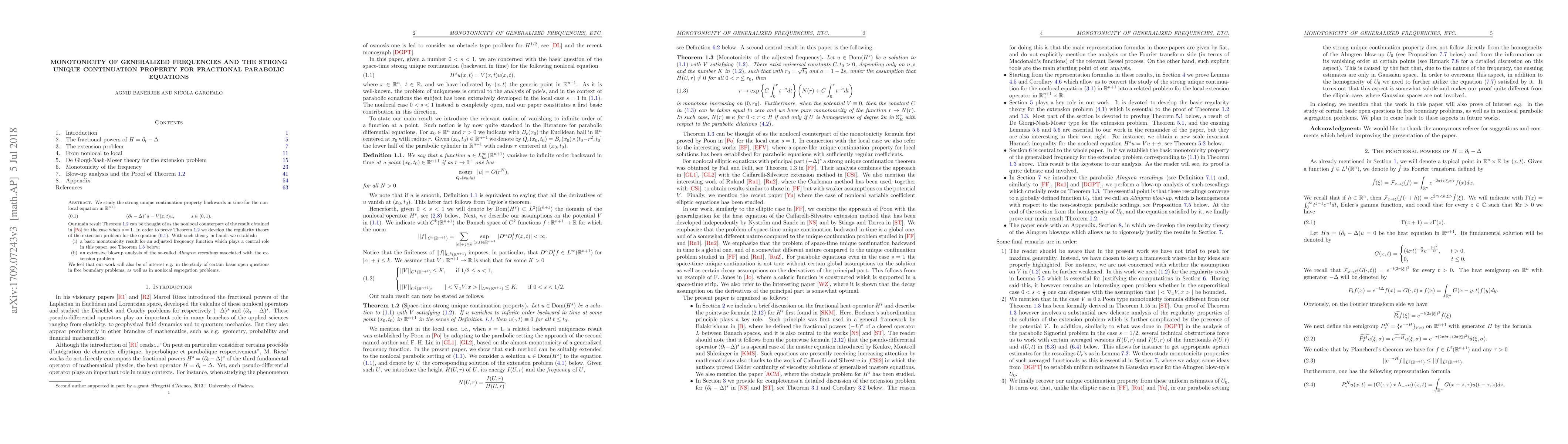 We study the strong unique continuation property backwards in time for the nonlocal equation in $\mathbb{R}^{n} \times \mathbb{R}$ \begin{equation}\label{one} (\partial_t - \Delta)^{s} u = V(x,t)u \end{equation} for $s \in (0,1)$. Our main result Theorem 1.2 can be thought of as the nonlocal counterpart of the result obtained by Poon for the case when $s=1$. In order to prove Theorem 1.2 we develop the regularity theory of the extension problem for the equation above. With such theory in hands we establish: i) a basic monotonicity result for an adjusted frequency function which plays a central role in this paper, see Theorem 1.3; ii) an extensive blowup analysis of the so-called Almgren rescalings associated with the extension problem. We feel that our work will also be of interest e.g. in the study of certain basic open questions in free boundary problems, as well as in nonlocal segregation problems.