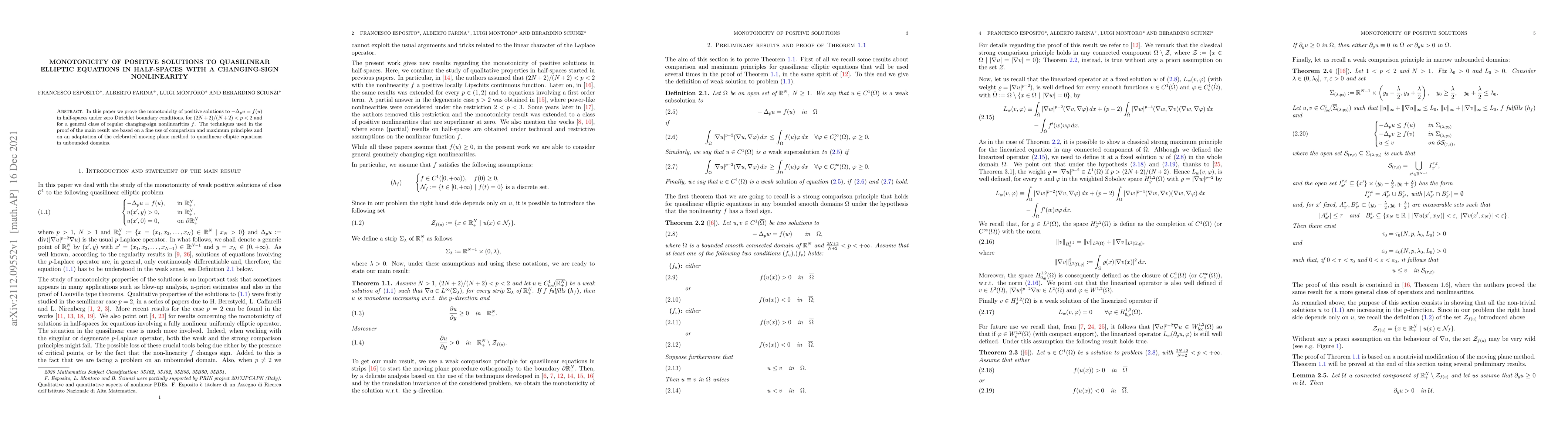 This paper proves the monotonicity of positive solutions to quasilinear elliptic equations in half-spaces with zero Dirichlet boundary conditions, using comparison and maximum principles, and adapting the moving plane method for unbounded domains. The analysis covers a range of changing-sign nonlinearities.