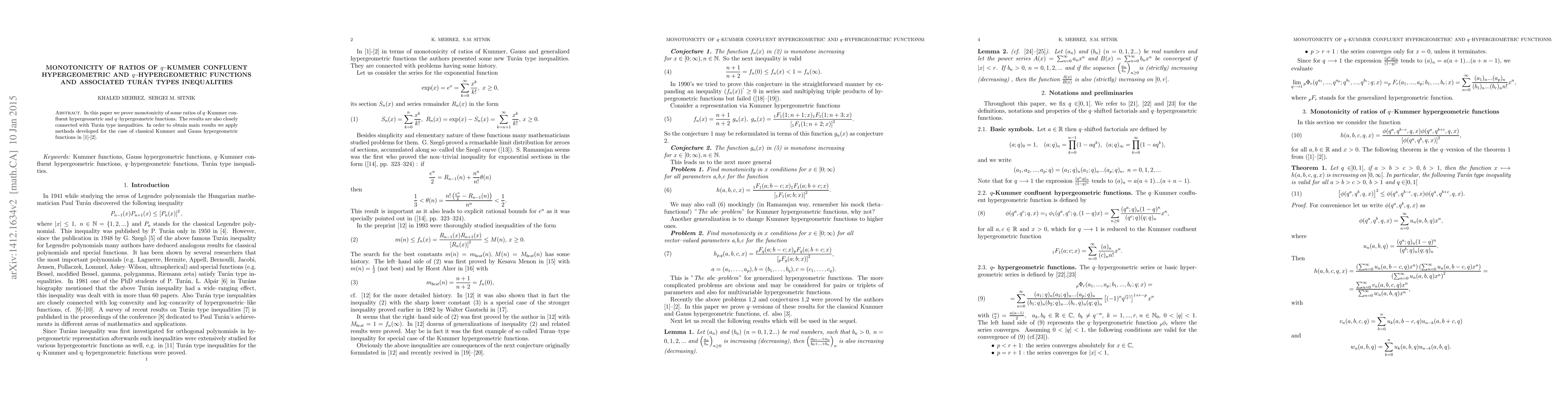 This paper proves the monotonicity of ratios of $q$-Kummer confluent hypergeometric and $q$-hypergeometric functions, utilizing established methods for classical hypergeometric functions. The results are also linked to Turán type inequalities.