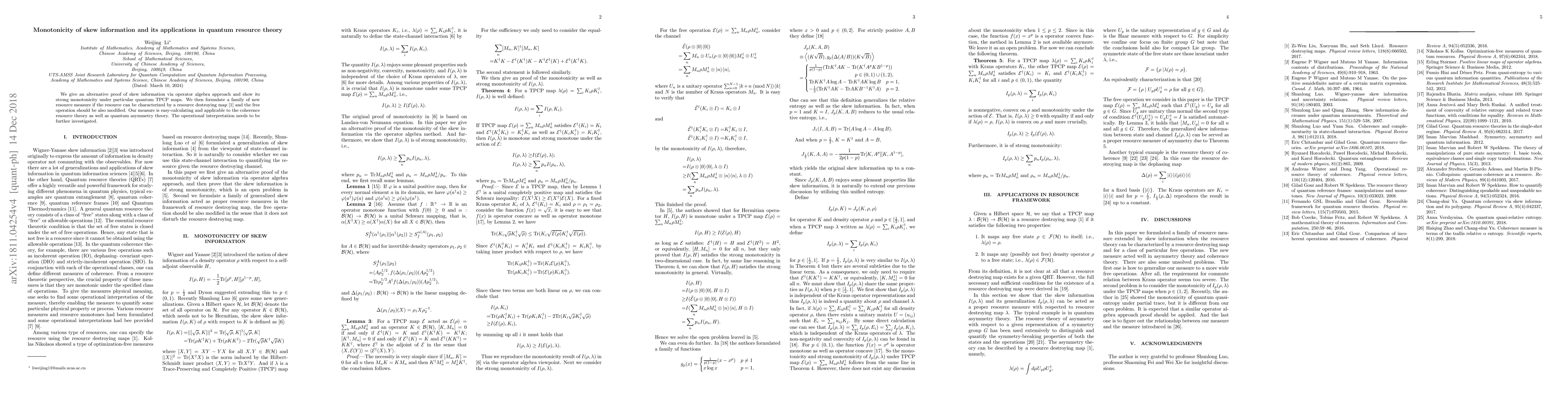 This paper provides an operator algebra proof of skew information and demonstrates its strong monotonicity under specific quantum maps. It introduces a new resource measure applicable to coherence and quantum asymmetry, though its operational interpretation requires further study.