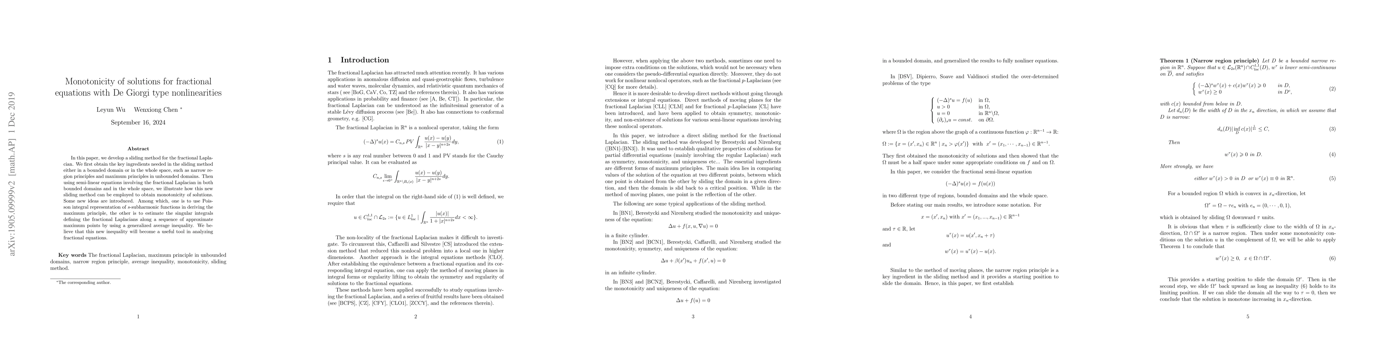 This paper develops a sliding method for fractional Laplacians, utilizing new ideas like Poisson integral representation and generalized average inequalities to establish monotonicity of solutions for semi-linear fractional equations in both bounded and unbounded domains.