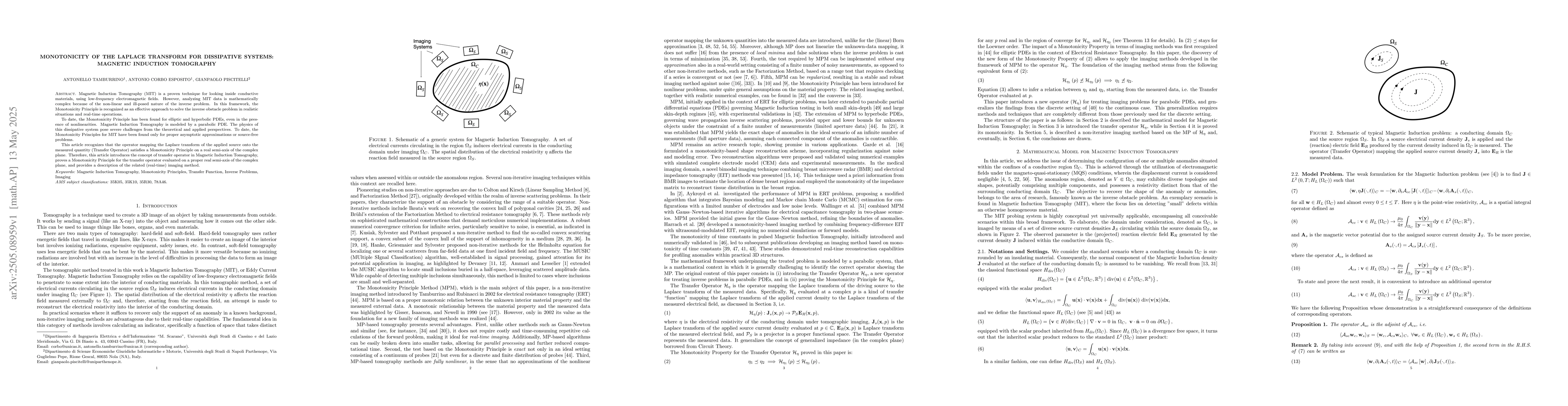 Magnetic Induction Tomography (MIT) is a proven technique for looking inside conductive materials, using low-frequency electromagnetic fields. However, analyzing MIT data is mathematically complex because of the non-linear and ill-posed nature of the inverse problem. In this framework, the Monotonicity Principle is recognized as an effective approach to solve the inverse obstacle problem in realistic situations and real-time operations. To date, the Monotonicity Principle has been found for elliptic and hyperbolic PDEs, even in the presence of nonlinearities. Magnetic Induction Tomography is modeled by a parabolic PDE. The physics of this dissipative system pose severe challenges from the theoretical and applied perspectives. To date, the Monotonicity Principles for MIT have been found only for proper asymptotic approximations or source-free problems. This article recognizes that the operator mapping the Laplace transform of the applied source onto the measured quantity (Transfer Operator) satisfies a Monotonicity Principle on a real semi-axis of the complex plane. Therefore, this article introduces the concept of transfer operator in Magnetic Induction Tomography, proves a Monotonicity Principle for the transfer operator evaluated on a proper real semi-axis of the complex plane, and provides a description of the related (real-time) imaging method.