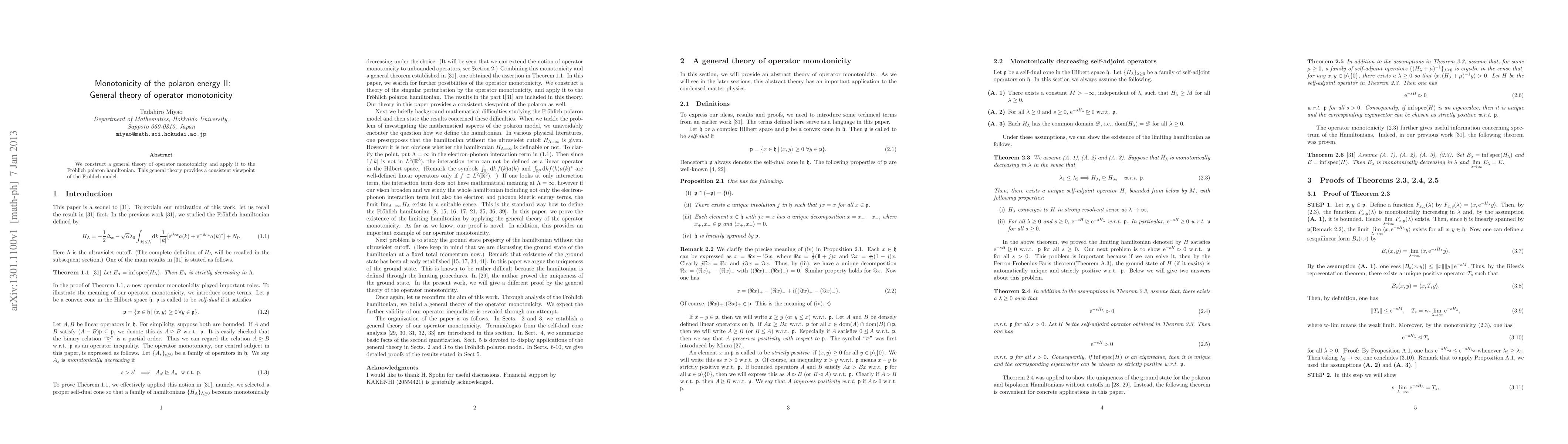 This paper develops a general theory of operator monotonicity for the Fr"ohlich polaron hamiltonian, providing a consistent view on the model's behavior.