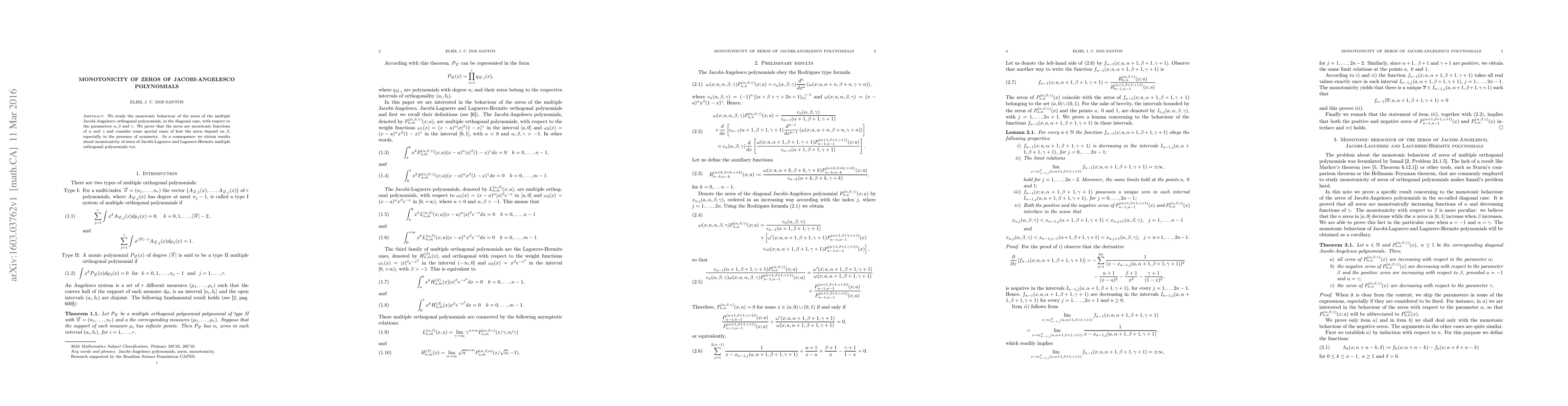 The paper presents a detailed analysis of the monotonic behavior of zeros of Jacobi-Angelesco polynomials, extending results to Jacobi-Laguerre and Laguerre-Hermite polynomials.