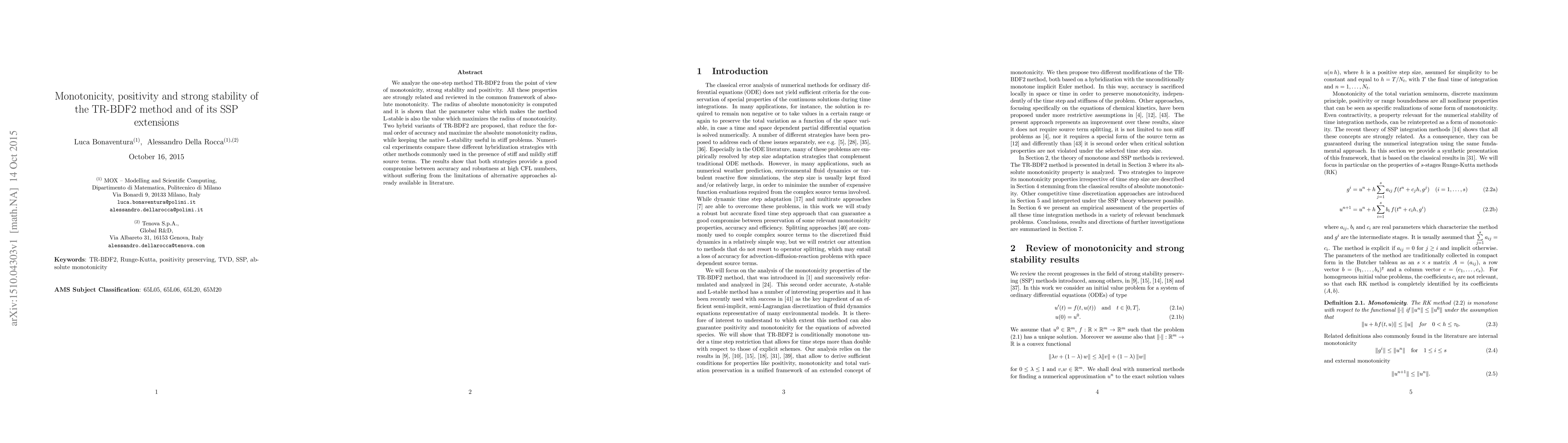 The paper analyzes the TR-BDF2 method, finding that the L-stable parameter value also maximizes its absolute monotonicity radius. Two hybrid TR-BDF2 variants are proposed to enhance absolute monotonicity without compromising L-stability for stiff problems. Numerical experiments demonstrate these strategies' effectiveness in balancing accuracy and robustness at high CFL numbers, outperforming alternative methods for stiff and mildly stiff source terms.