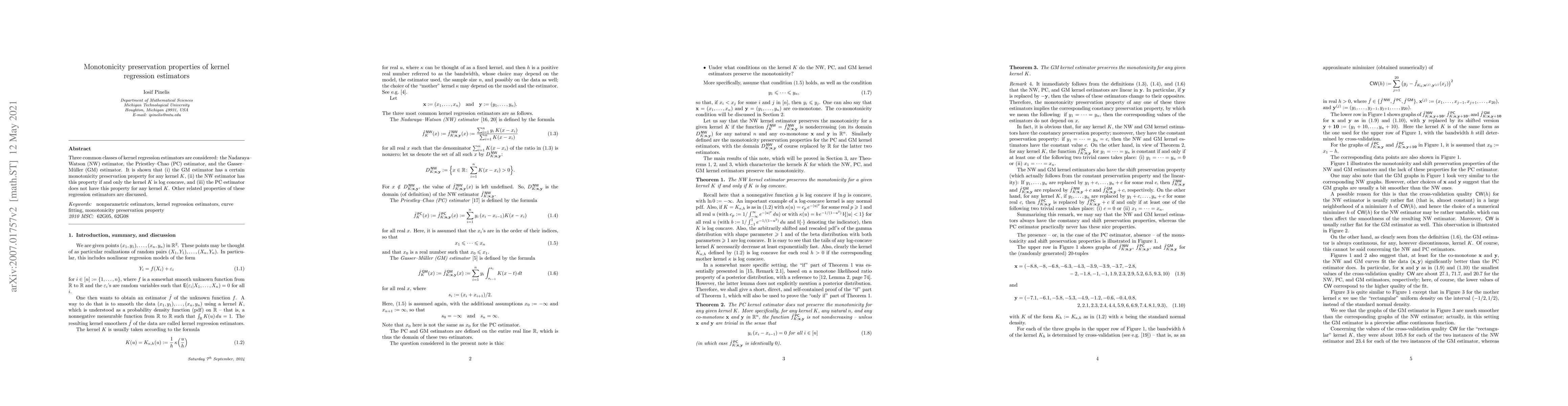 This paper examines monotonicity preservation properties of three kernel regression estimators: GM, NW, and PC. It finds that the GM estimator preserves monotonicity for any kernel, the NW estimator only if the kernel is log concave, and the PC estimator lacks this property for any kernel.