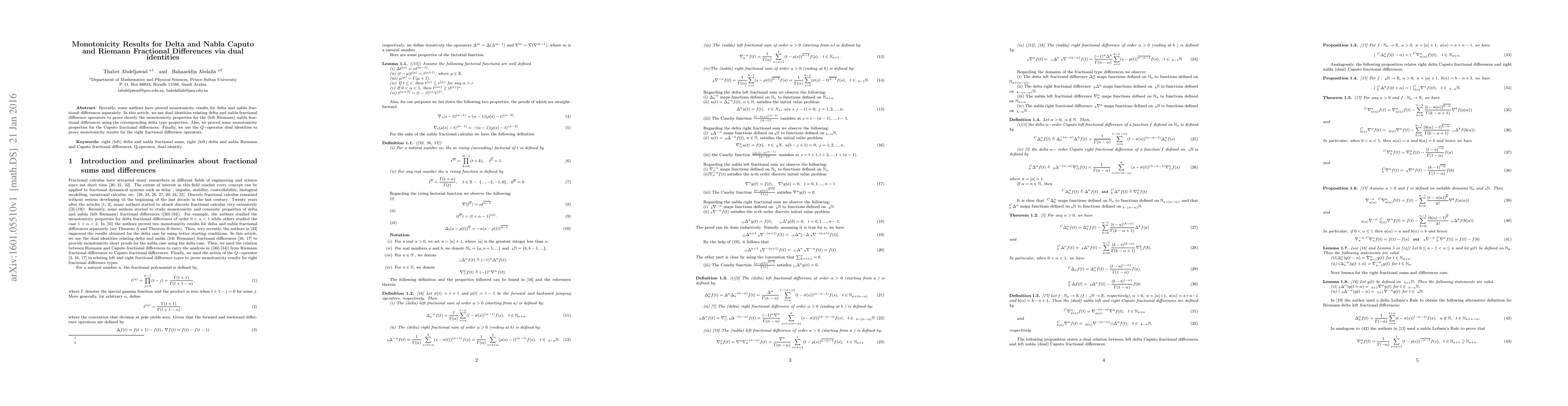 This paper proves monotonicity results for both delta and nabla Caputo and Riemann fractional differences using dual identities, extending previous results for delta and nabla separately to unify them under a common framework. It also demonstrates the application of $Q-$operator dual identities for right fractional differences.