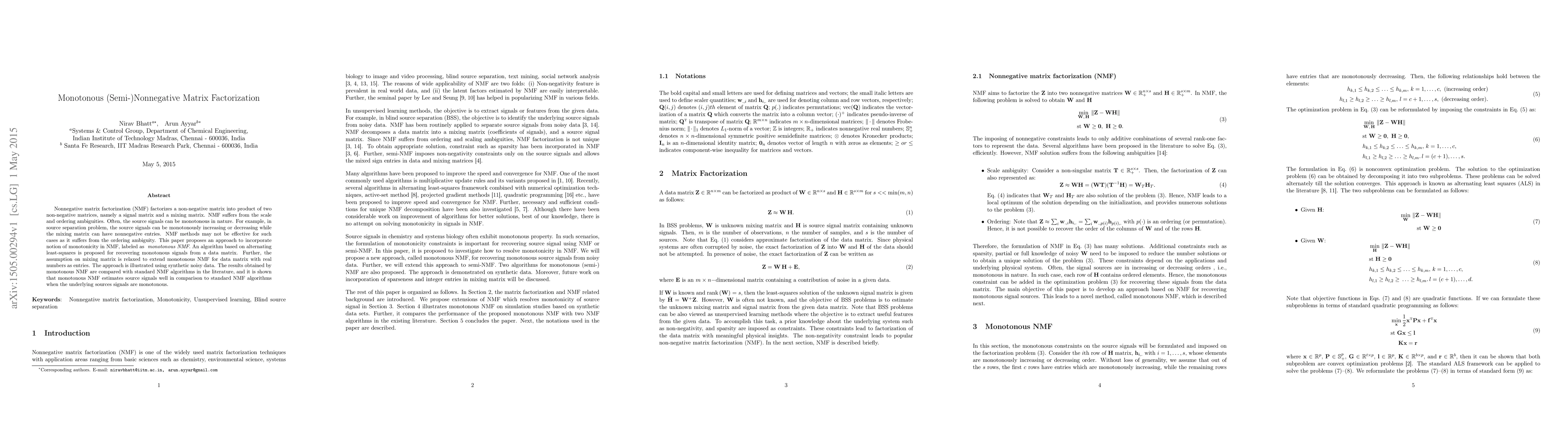This paper proposes a new approach to Nonnegative Matrix Factorization (NMF) that incorporates the notion of monotonicity in source signals, improving its performance for monotonous signals and data with real number entries.