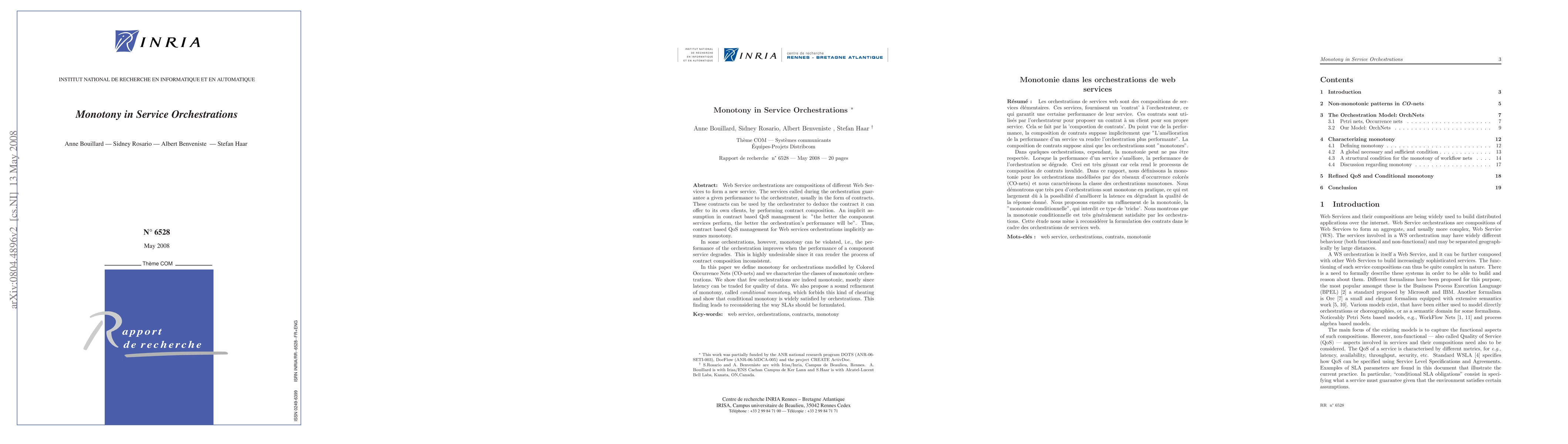Web Service orchestrations are compositions of different Web Services to form a new service. The services called during the orchestration guarantee a given performance to the orchestrater, usually in the form of contracts. These contracts can be used by the orchestrater to deduce the contract it can offer to its own clients, by performing contract composition. An implicit assumption in contract based QoS management is: "the better the component services perform, the better the orchestration's performance will be". Thus, contract based QoS management for Web services orchestrations implicitly assumes monotony. In some orchestrations, however, monotony can be violated, i.e., the performance of the orchestration improves when the performance of a component service degrades. This is highly undesirable since it can render the process of contract composition inconsistent. In this paper we define monotony for orchestrations modelled by Colored Occurrence Nets (CO-nets) and we characterize the classes of monotonic orchestrations. We show that few orchestrations are indeed monotonic, mostly since latency can be traded for quality of data. We also propose a sound refinement of monotony, called conditional monotony, which forbids this kind of cheating and show that conditional monotony is widely satisfied by orchestrations. This finding leads to reconsidering the way SLAs should be formulated.
