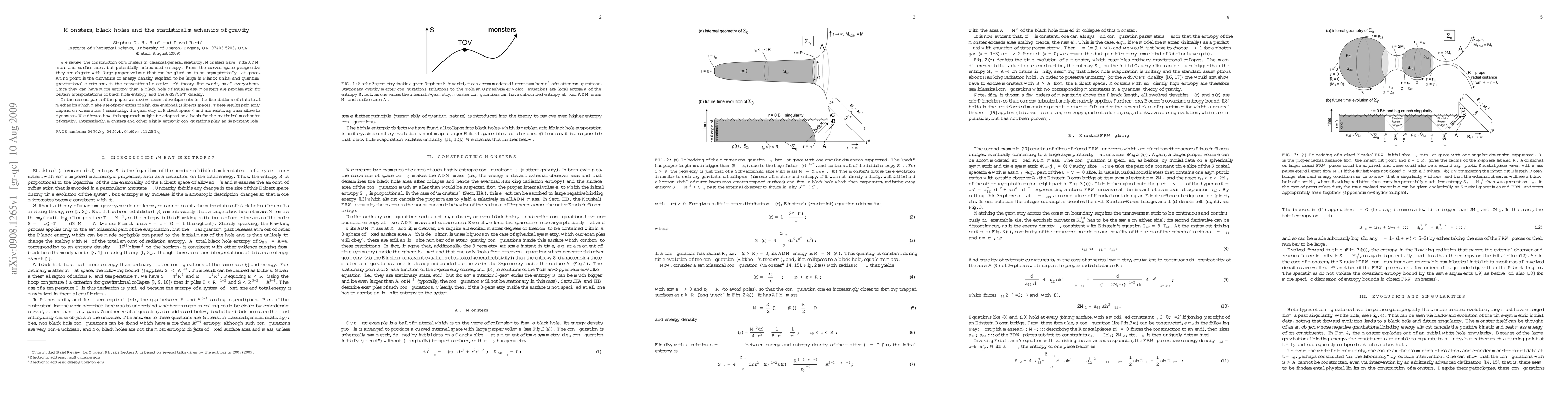 This paper reviews the concept of "monsters" in classical general relativity, which possess finite mass and surface area but potentially unbounded entropy, challenging interpretations of black hole entropy and AdS/CFT duality. It also explores recent advances in statistical mechanics based on high-dimensional Hilbert space geometry, suggesting that highly entropic configurations like monsters could form a foundation for the statistical mechanics of gravity.