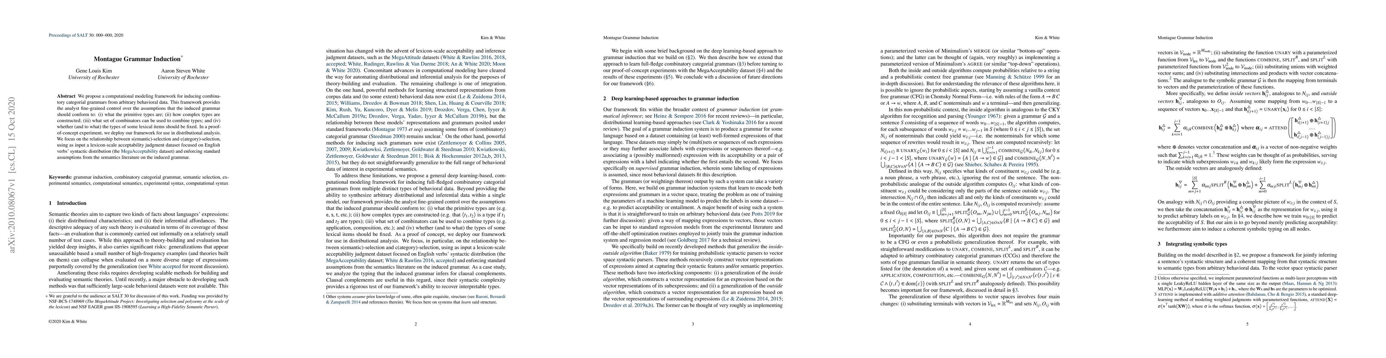 A new framework for inducing combinatory categorial grammars from behavioral data provides fine-grained control over grammar assumptions, allowing for more accurate analysis of linguistic relationships. The framework is tested using a dataset on English verb syntactic distribution, revealing insights into semantic and categorical selection.