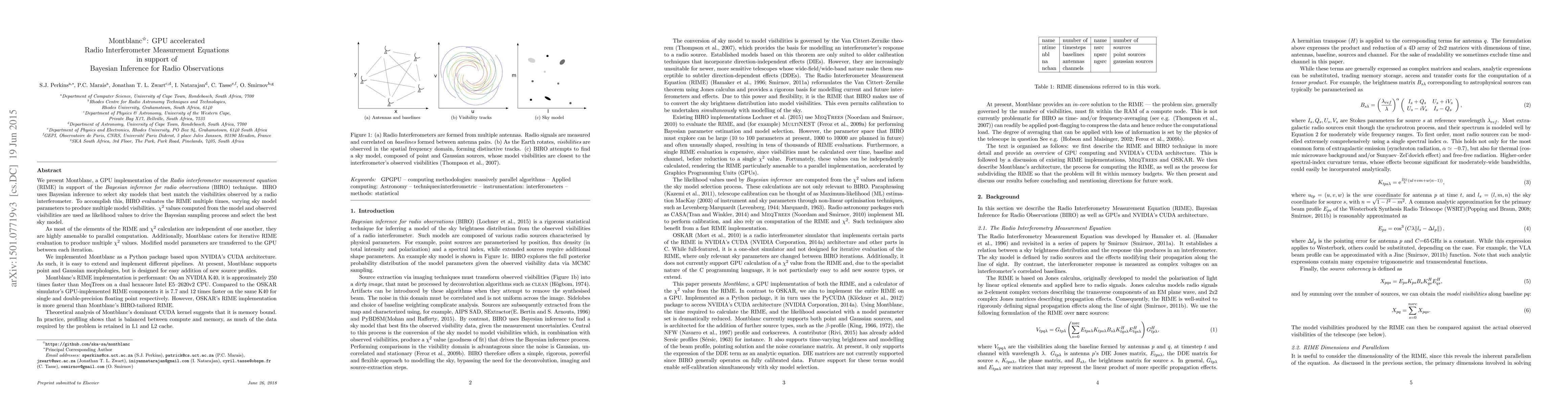 Montblanc is a GPU-accelerated Python package for efficiently computing Radio Interferometer Measurement Equations (RIME) to support Bayesian Inference for Radio Observations (BIRO). It is significantly faster than CPU-based alternatives, achieving up to 250 times the performance of MeqTrees on an NVIDIA K40 GPU.